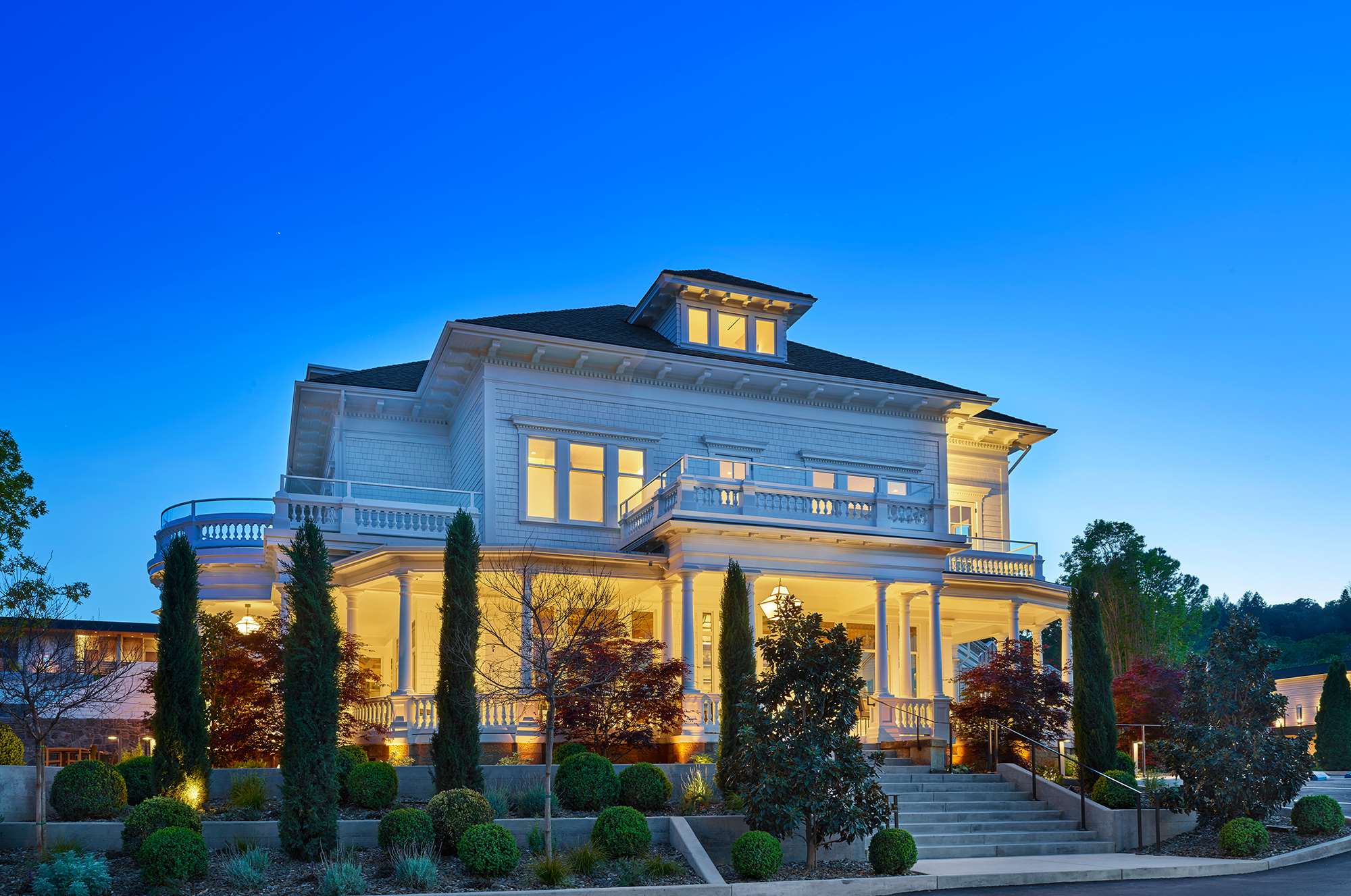 주니어 킹 스위트 + 야외 생활 공간 빈야드 뷰 주니어 스위트(야외 생활 공간 포함)는 실내 및 야외 공간을 합쳐 950제곱피트(약 88m²)가 넘습니다. 객실은 1,000제곱피트(약 93m²) 규모로, 리볼타 카르미냐 린넨이 깔린 킹사이즈 침대, 60인치 평면 TV, 부드러운 담요, 이탈리아 디자이너 카사 제타의 맞춤형 가구를 갖추고 있습니다. 코너에 위치한 이 객실은 천장부터 바닥까지 내려오는 이중 유리문이 있어 넓은 테라스로 연결됩니다. 야외 생활 공간에는 화덕, 넓고 편안한 좌석, 흔들의자, 데이베드가 마련되어 있으며, 포도밭과 산비탈의 전망을 감상할 수 있습니다. 아름답게 디자인된 대리석과 석재 욕실에는 욕조와 유리로 된 이탈리아 타일 레인 샤워기가 설치되어 있으며, 조각된 대리석 세면대와 화장대가 있는 별도의 화장실이 있습니다.