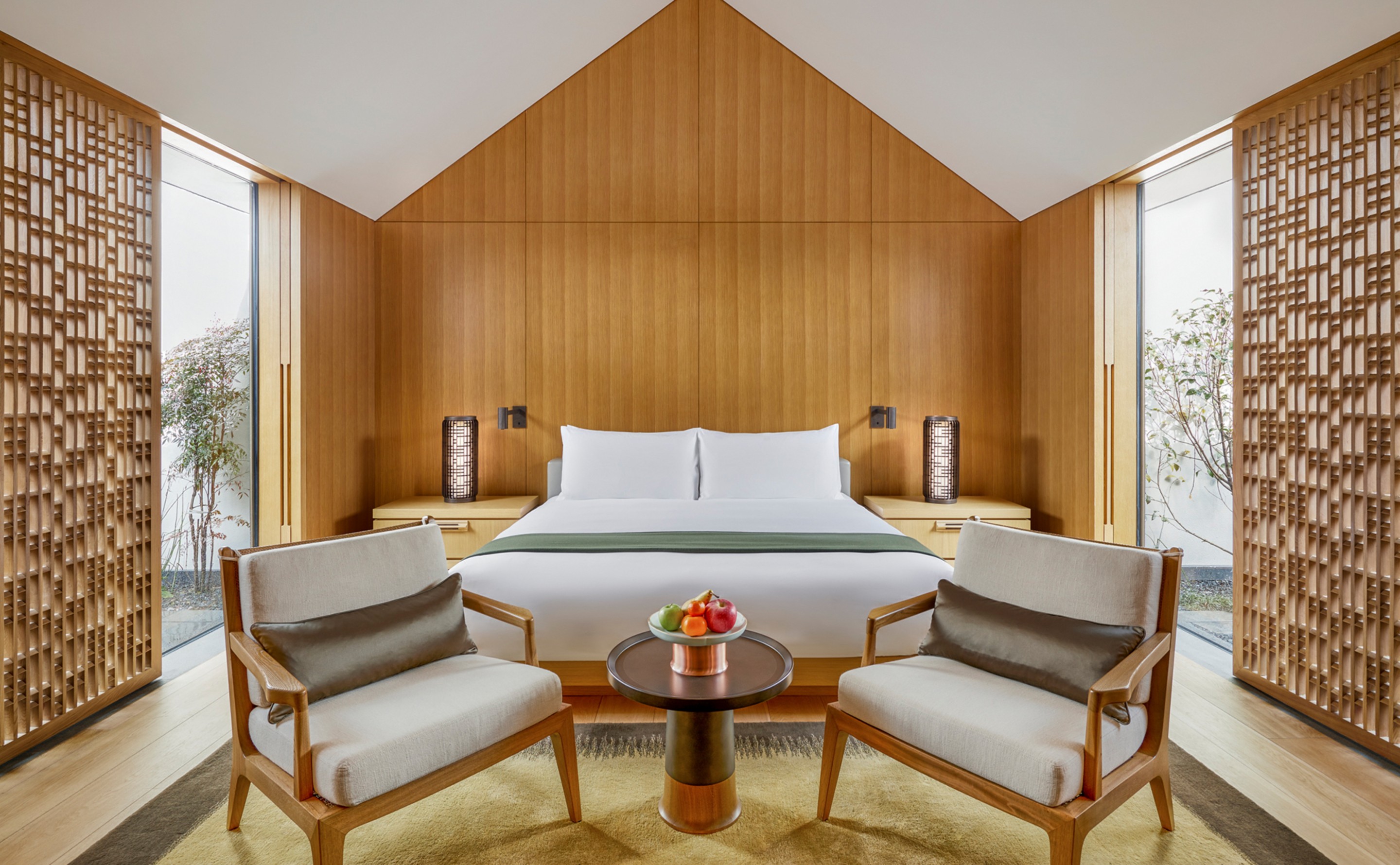 아만양윤의 밍 파빌리온은 리조트의 신축 건물에 위치한 현대적인 공간입니다. 115㎡(약 1238제곱피트)의 넓은 실내에는 킹사이즈 베드 또는 트윈 베드가 마련되어 있어, 인근의 난슈팡을 방문하거나 아만양윤 스파 & 웰니스 센터를 이용하는 등 리조트를 둘러본 후 편안한 휴식을 취할 수 있습니다. 파빌리온에는 트윈 세면대와 대형 욕조를 갖춘 실내 욕실이 있으며, 가장 평온한 공간은 대나무 숲이 내다보이는 야외 샤워 시설과 욕조가 있는 전용 안뜰일 것입니다.