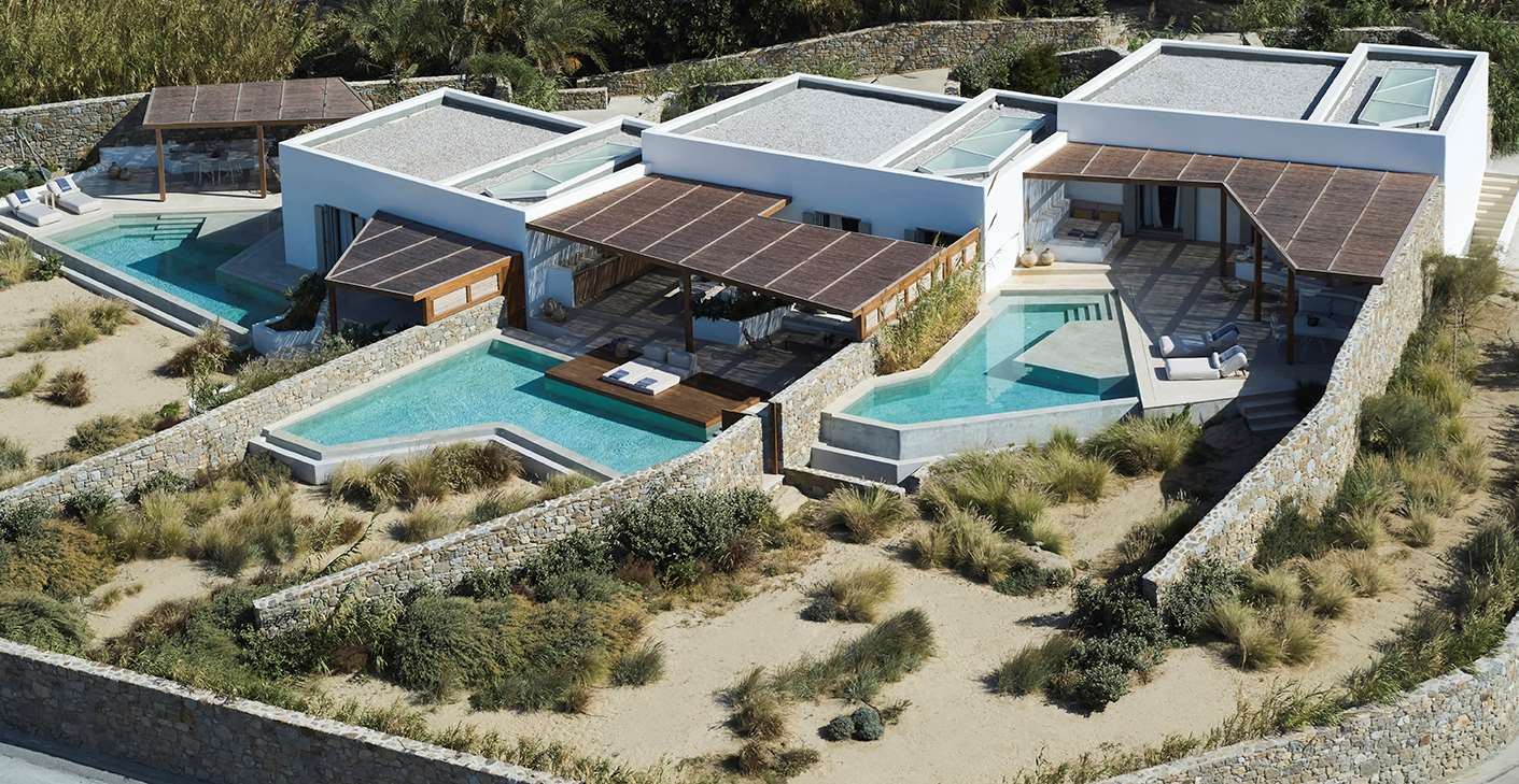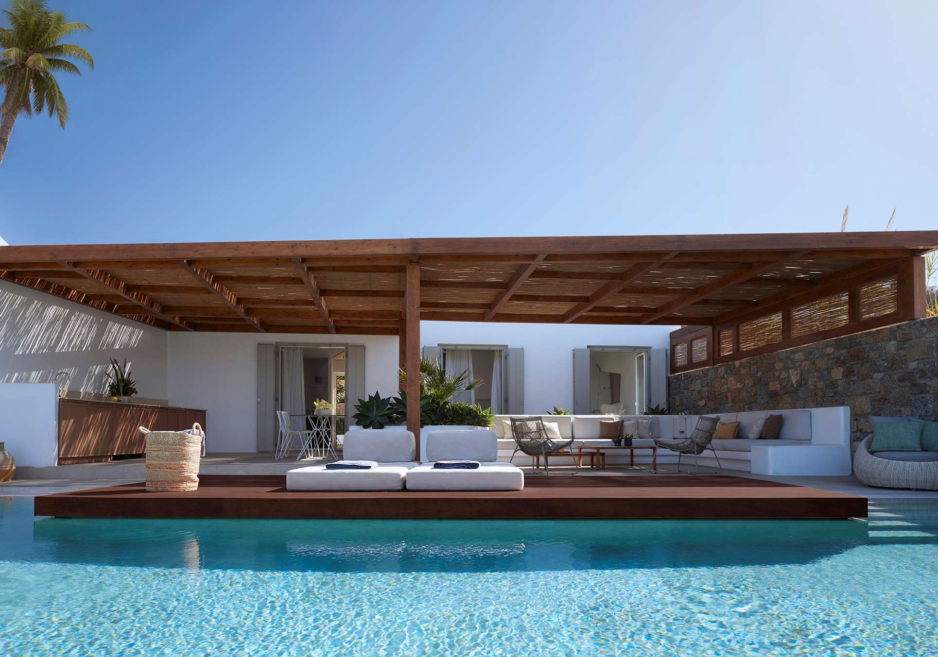 미코노스 타운 외곽에 위치한 빌 & 쿠 스위트 & 라운지의 새로운 1베드룸 빌라에서 최고의 우아함과 세련됨을 만끽하세요. 탁 트인 바다와 석양 전망, 호텔 편의시설 이용은 물론 완벽한 프라이버시까지 보장됩니다. 1베드룸 빌라는 킹사이즈 침대, 소파베드, 개방형 거실, 실내외 식사 및 라운지 공간을 갖추고 있으며, 각 빌라에는 전용 온수 수영장이 마련되어 있습니다. 완벽한 프라이버시를 제공하는 세 채의 새로운 빌라는 개별적으로 예약하거나, 수영장을 갖춘 독립형 3베드룸 빌라로 합쳐서 예약할 수 있습니다. 커플이나 함께 여행하는 친구, 그리고 독립적인 공간이나 프라이빗한 시간을 선호하는 여러 세대 가족에게도 안성맞춤입니다. 빌라들은 외부로 연결되어 있어 편리하게 이동하면서도 완벽한 프라이버시를 누릴 수 있습니다.