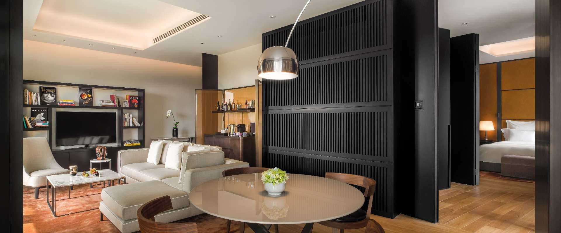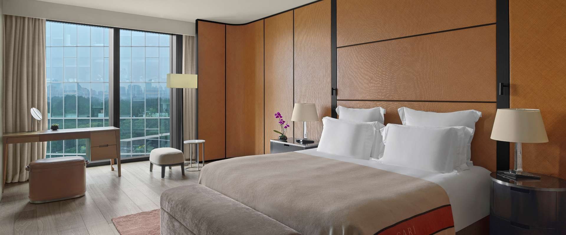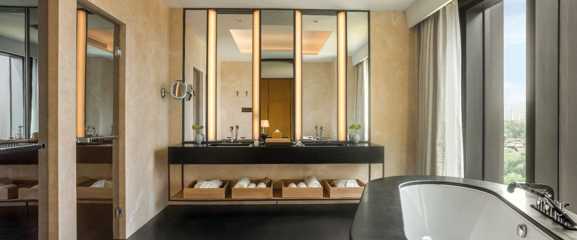 량마 강과 베이징 스카이라인을 조망하는 디럭스 스위트는 이탈리아 디자인의 맞춤형 요소로 꾸며진 거실, 드레스룸이 있는 별도의 침실, 검은색 화강암 욕조와 샤워실이 있는 밝은 흰색 나보나 트래버틴으로 마감된 욕실을 포함한 넓은 공간들이 연이어 펼쳐집니다. 각 스위트는 독특한 특징과 개별적인 감각으로 구성되어 있으며, 장기 투숙에 최적화되어 있어 프라이빗 레지던스의 느낌을 선사합니다. 102~121㎡.