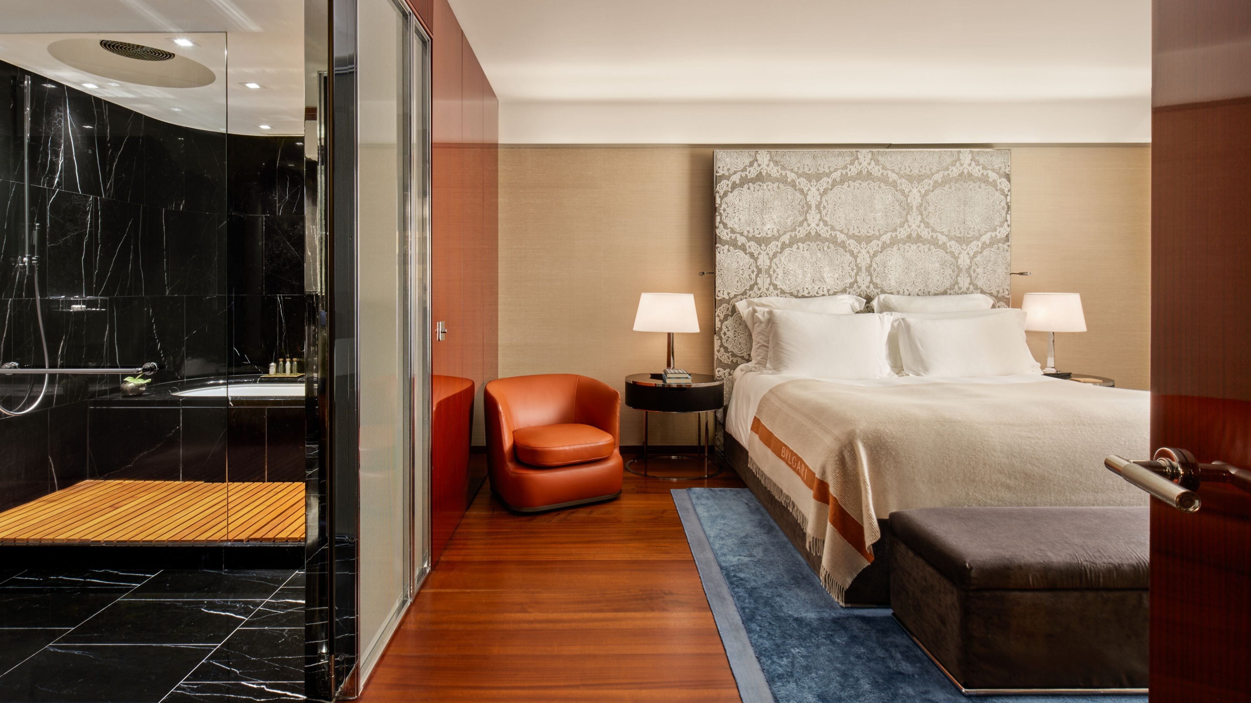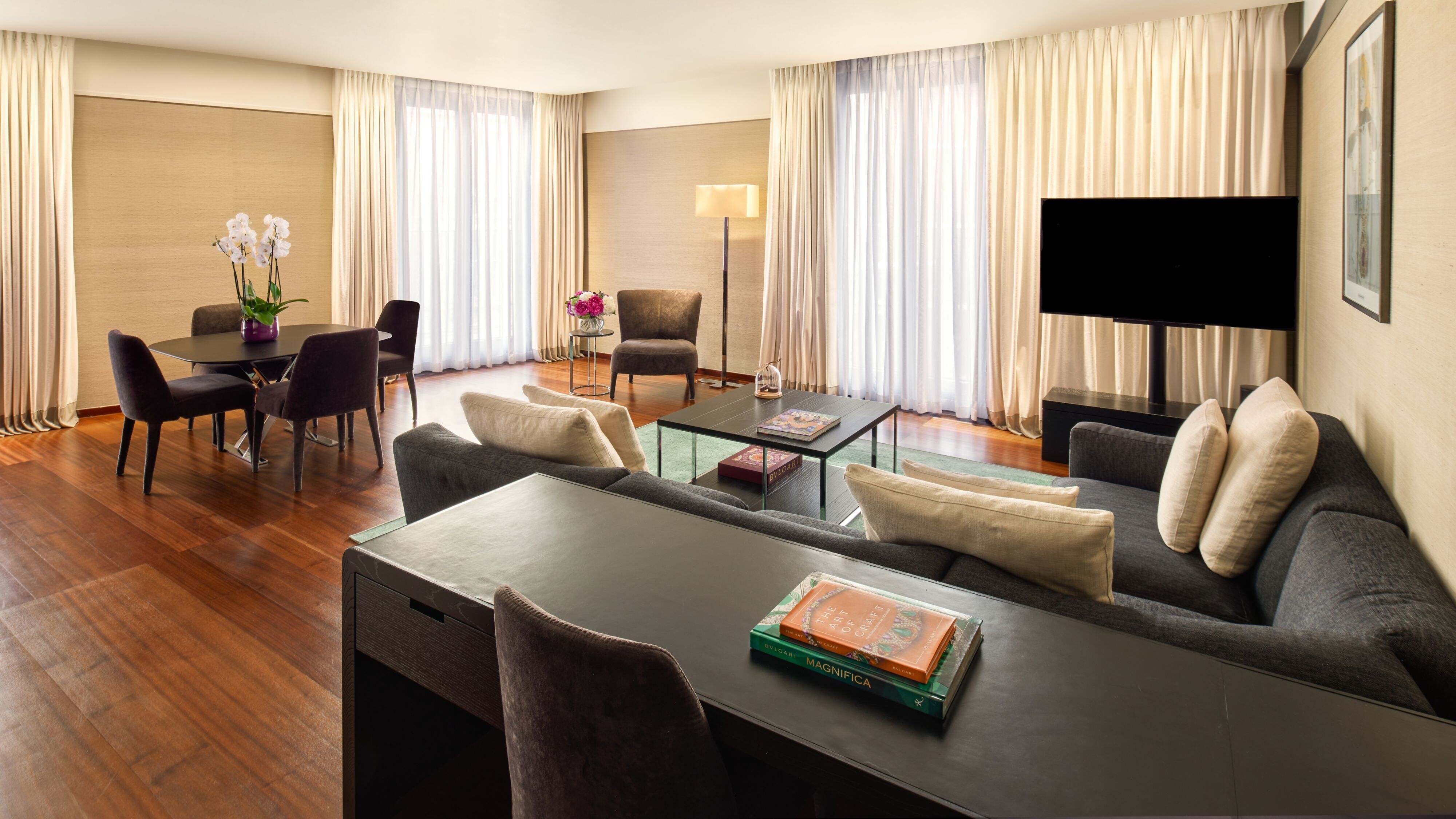 나이츠브리지 1 베드 럭셔리 스위트입니다. 전용 럭셔리 대리석 욕실과 넓고 우아한 거실을 갖추고 있습니다.
