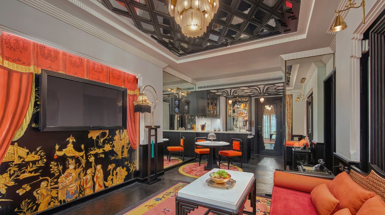 투란도트의 집에 오신 것을 환영합니다. 투란도트는 자신의 수수께끼를 풀 수 있는 구혼자에게만 결혼을 제안하지만, 실패할 경우 사형에 처해진다는 조건이 있는 도달 불가능한 공주입니다. 별도의 거실과 식당, 풀 사이즈 바를 갖춘 이 호화로운 스위트는 하노이에서 최고의 왕실 생활을 위한 무대를 마련하며, 비교할 수 없는 럭셔리한 숙박을 제공합니다. 프라이빗 테라스에서는 호안끼엠 지구의 파노라마 뷰가 펼쳐져 하루를 여유롭게 보내도록 유혹하며, 하노이의 럭셔리 호텔을 찾는 손님들에게 완벽하게 어울립니다.