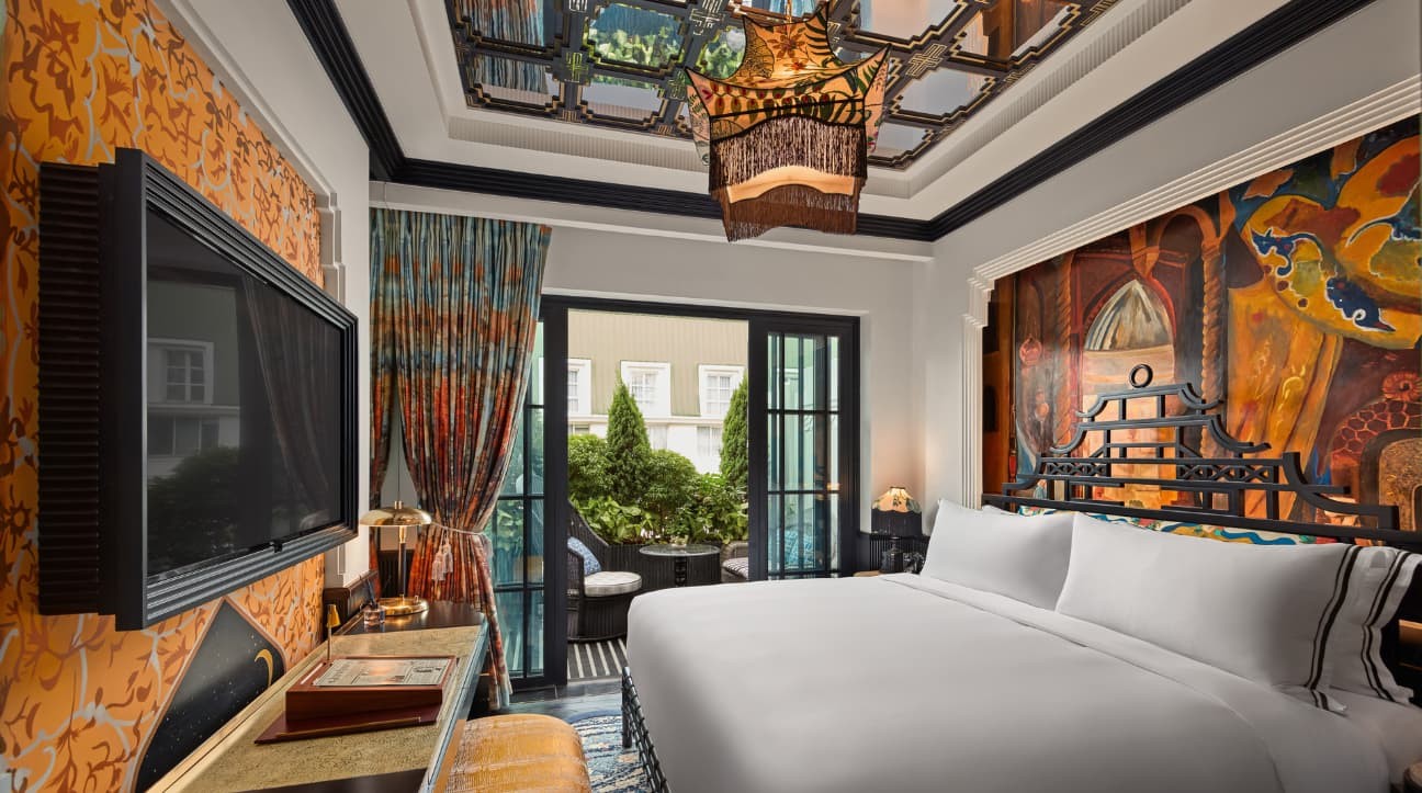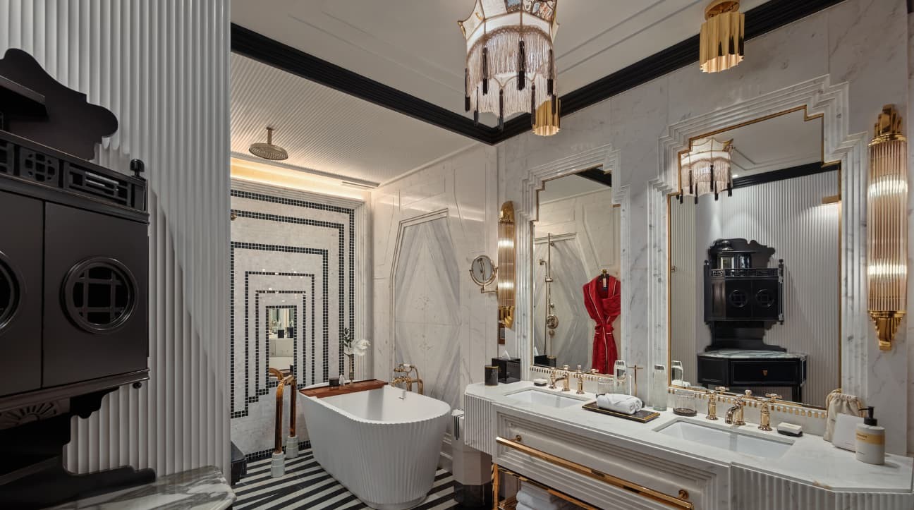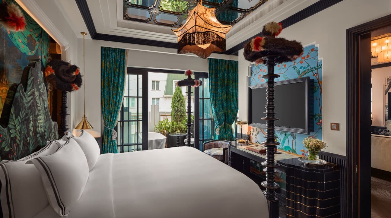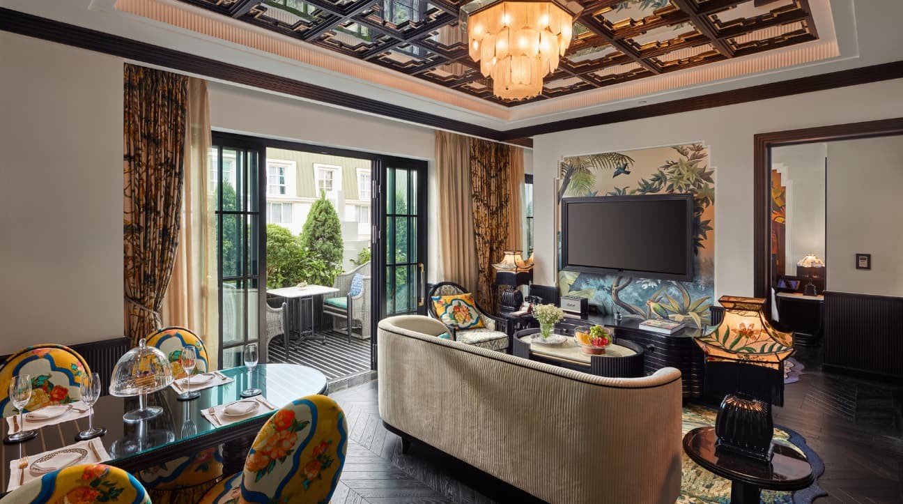 천일야화의 정신을 담아낸 투 베드룸 로열 오페라 패밀리 스위트는 예술성, 럭셔리, 그리고 친밀함이 완벽한 조화를 이루는 매혹적인 공간입니다. 손으로 그린 벽화, 거울 천장, 맞춤형 가구로 연출된 극장적 우아함을 경험하세요. 세련된 저녁을 위한 프라이빗 라운지, 다이닝 에어리어, 바를 갖추고 있습니다. 마스터 침실은 독립형 욕조가 있는 대리석 욕실을 제공하며, 두 번째 침실은 프라이빗 샤워실을 갖추고 있습니다. 야외 욕조가 있는 울창한 테라스에서 별빛 아래 휴식을 취할 수 있습니다. 연결과 편안함을 추구하는 가족들을 위한 완벽한 공간으로, 하노이의 희귀한 안식처입니다.