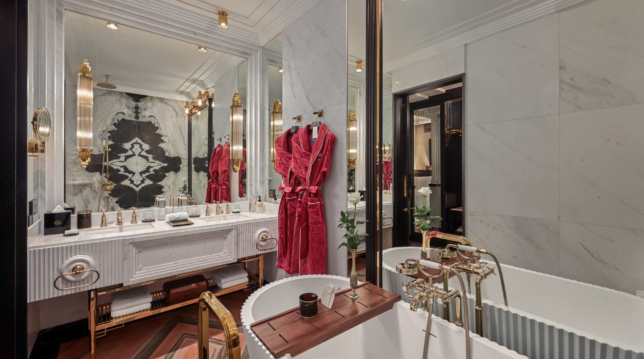 1920년대의 우아함을 물씬 풍기는 15개의 프리미어룸은 하노이 5성급 호텔 객실을 찾는 손님들을 위한 이상적인 선택입니다. 각 객실은 눈에 띄는 아르데코 인테리어, 잊혀진 시대의 장면을 담은 수작업 벽화, 그리고 오페라의 생생한 캐릭터를 기념하는 예술 작품들로 특징지어집니다. 광택이 나는 철제 프렌치 발코니에서 휴식을 취하며 즐거운 몽상에 빠져보세요. 실내로 돌아오면 푹신한 킹사이즈 침대와 넓은 대리석 욕실이 여러분을 기다리고 있습니다. 다른 하노이 5성급 호텔과 달리, 프리미어룸은 재즈 시대의 우아함과 화려함을 현대적인 럭셔리 호텔의 편의시설과 완벽하게 조화시킵니다.