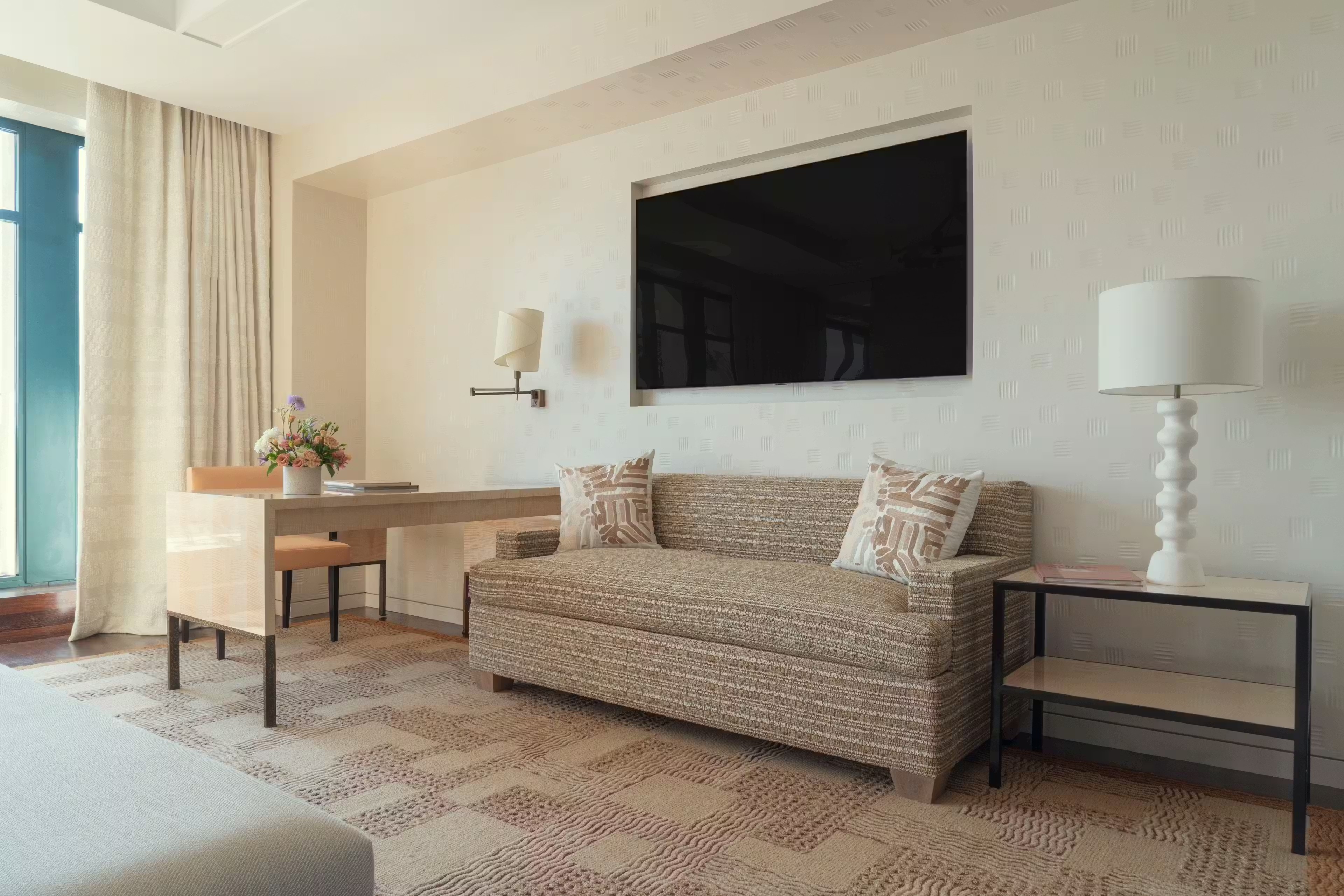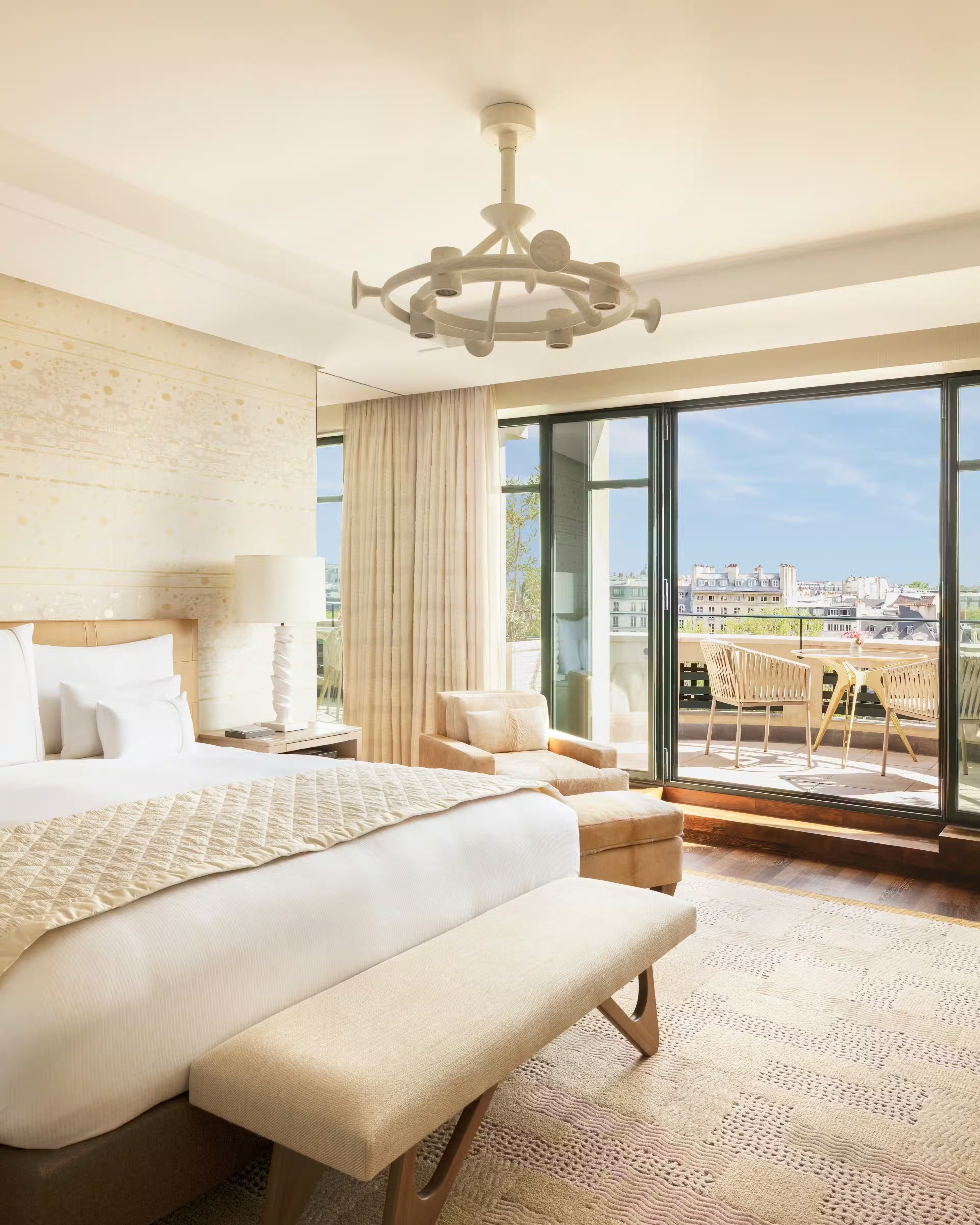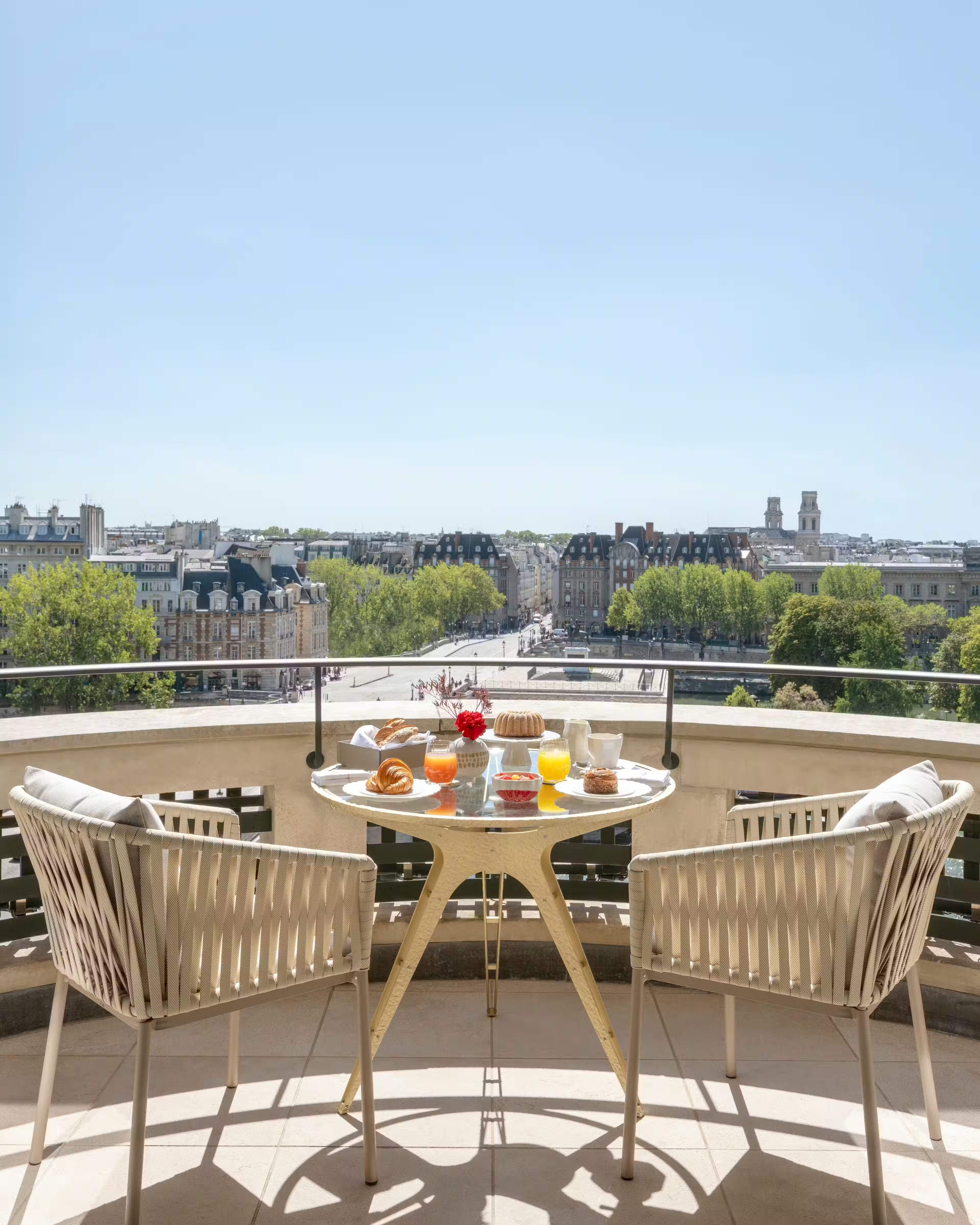 센 강이 내려다보이는 발코니 주니어 스위트는 섬세한 우아함을 자아냅니다. 스위트는 책상과 라운지 공간이 있는 넓은 침실로 구성되어 있어 독서를 즐기거나, 미식을 맛보거나, 편안한 휴식을 취하기에 완벽한 공간을 제공합니다. 메종 6층에 위치한 발코니에서는 노트르담부터 루브르까지 파리의 역사를 한눈에 담을 수 있는 파노라마 뷰가 펼쳐집니다. 피터 마리노가 디자인한 이 매력적인 스위트는 부드럽고 따뜻한 색조, 넉넉한 공간감, 아르데코에서 영감을 받은 현대적인 감각이 조화를 이룹니다. 스위트에는 대형 욕조, 워크인 함맘 샤워, 뷰티 바를 갖춘 대리석 욕실과 별도의 드레스룸도 마련되어 있습니다.