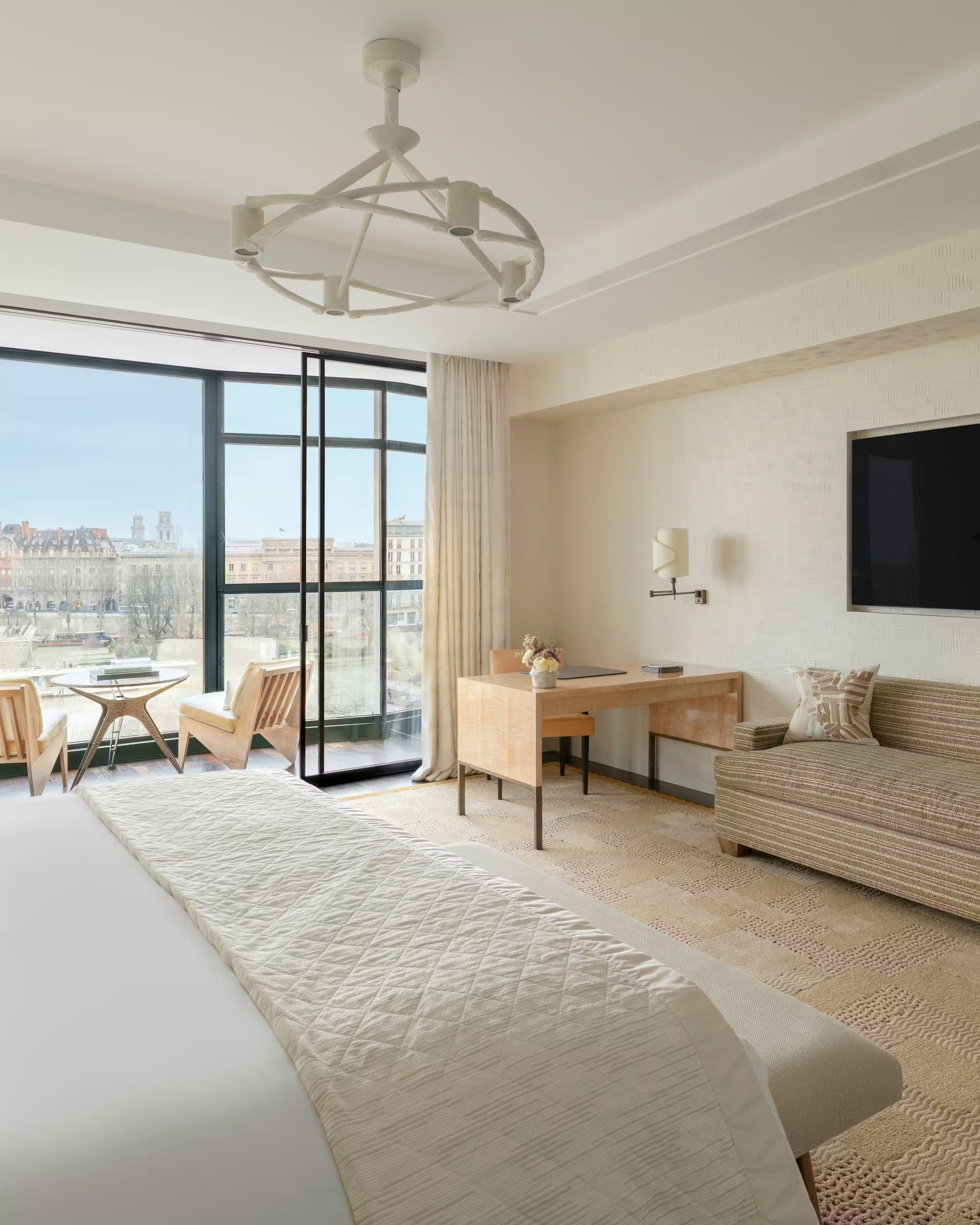 매력적인 센 주니어 스위트는 빛이 가득한 아름다운 윈터 가든을 자랑하며, 이곳의 멋진 라운지 공간에서는 센 강과 강둑을 따라 지나가는 사람들의 탁 트인 전망을 감상할 수 있습니다. 전형적인 파리지앵 스타일로, 풍부한 아르데코 유산에서 영감을 받은 장식은 화려한 패브릭과 색상 팔레트로 꾸며져 있습니다. 전체가 대리석으로 마감된 우아하고 밝은 욕실에는 대형 욕조, 함맘 샤워, 뷰티 바가 마련되어 있습니다. 업무용 책상 공간과 별도의 드레스룸이 스위트의 완성도를 높여줍니다. 매력적인 센 주니어 스위트는 빛이 가득한 아름다운 윈터 가든을 자랑하며, 이곳의 멋진 라운지 공간에서는 센 강과 강둑을 따라 지나가는 사람들의 탁 트인 전망을 감상할 수 있습니다. 전형적인 파리지앵 스타일로, 풍부한 아르데코 유산에서 영감을 받은 장식은 화려한 패브릭과 색상 팔레트로 꾸며져 있습니다. 전체가 대리석으로 마감된 우아하고 밝은 욕실에는 대형 욕조, 함맘 샤워, 뷰티 바가 마련되어 있습니다. 업무용 책상 공간과 별도의 드레스룸이 스위트의 완성도를 높여줍니다.