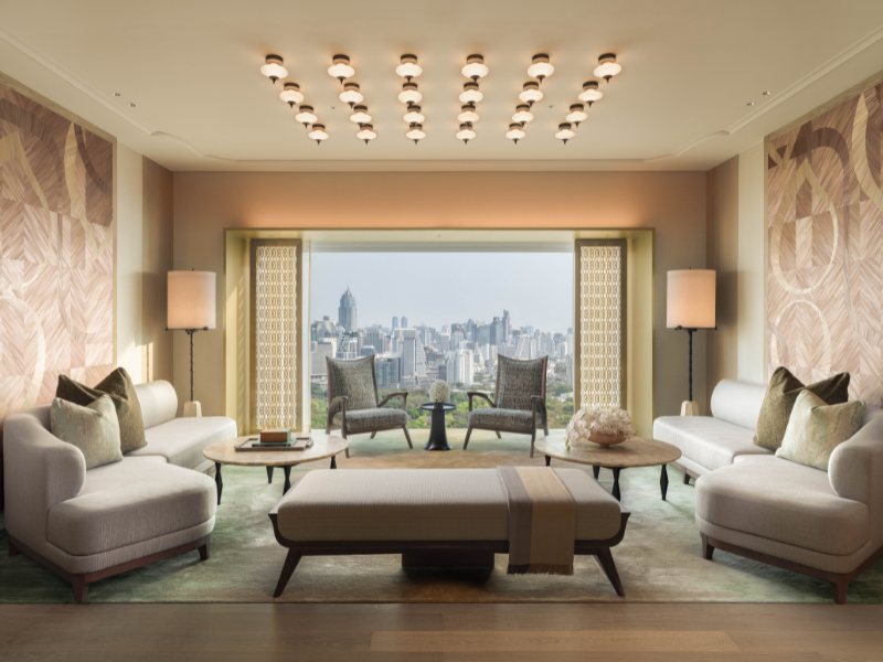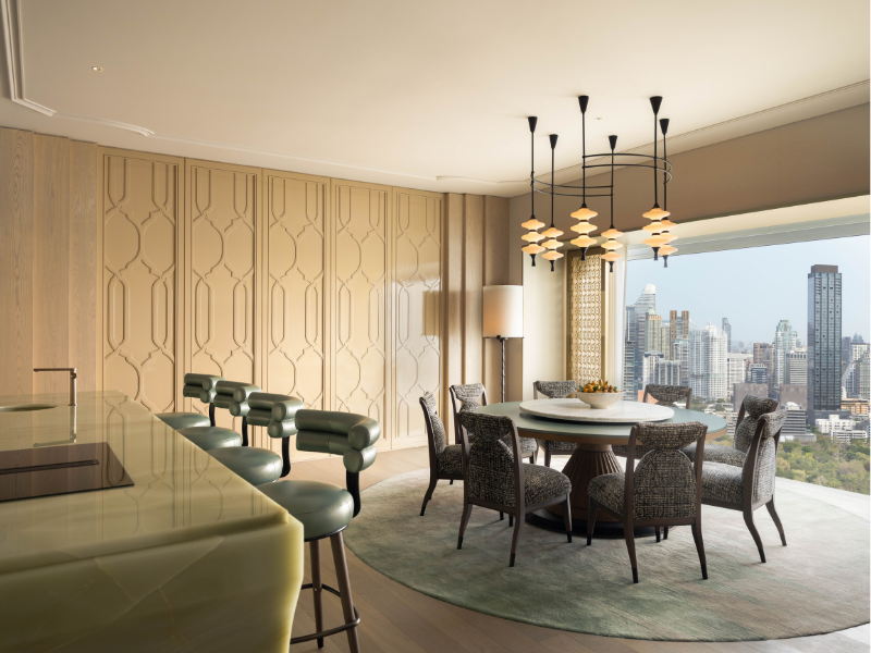 태국의 수도 높은 곳에 자리한 라타나코신 스위트에서 비교할 수 없는 럭셔리함과 격조 높은 편안함을 경험해 보세요. 도시의 스카이라인과 푸르른 룸피니 공원의 탁 트인 전망을 감상할 수 있습니다. 방콕의 화려한 역사에서 영감을 받은 정교한 태국 스타일의 장식과 예술적인 가구로 꾸며진 150㎡ 넓이의 우아한 스위트에는 셰프 테이블, 다이닝룸, 바가 마련되어 있어 세련된 모임에 완벽한 공간을 제공합니다. 스위트 투숙객은 39층에 위치한 멤버스 클럽 라운지를 이용하며 한 차원 높은 경험을 할 수 있으며, 이곳에서는 회원 전용 특전과 맞춤형 서비스가 기다리고 있습니다.