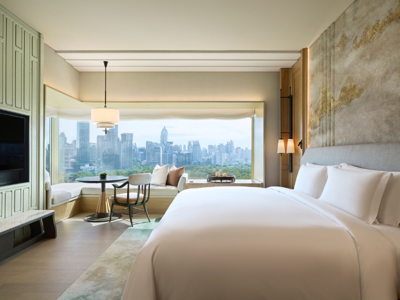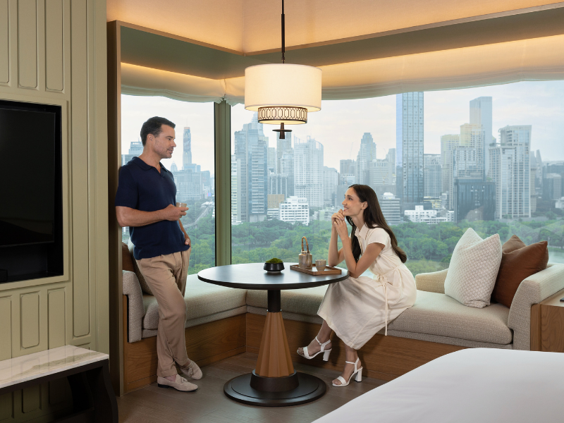 도시 스카이라인과 룸피니 공원의 파노라마 전망을 자랑하는 클럽 코너룸은 고층에 위치하여 세련된 숙박과 특별한 혜택을 함께 제공합니다. 킹 베드 1개 또는 더블 베드 2개가 마련되어 있으며, 회원 전용 클럽 라운지에서 특별한 혜택과 맞춤형 서비스를 경험하실 수 있습니다. 52㎡ 크기의 이 객실은 편안함과 럭셔리함을 선사합니다.