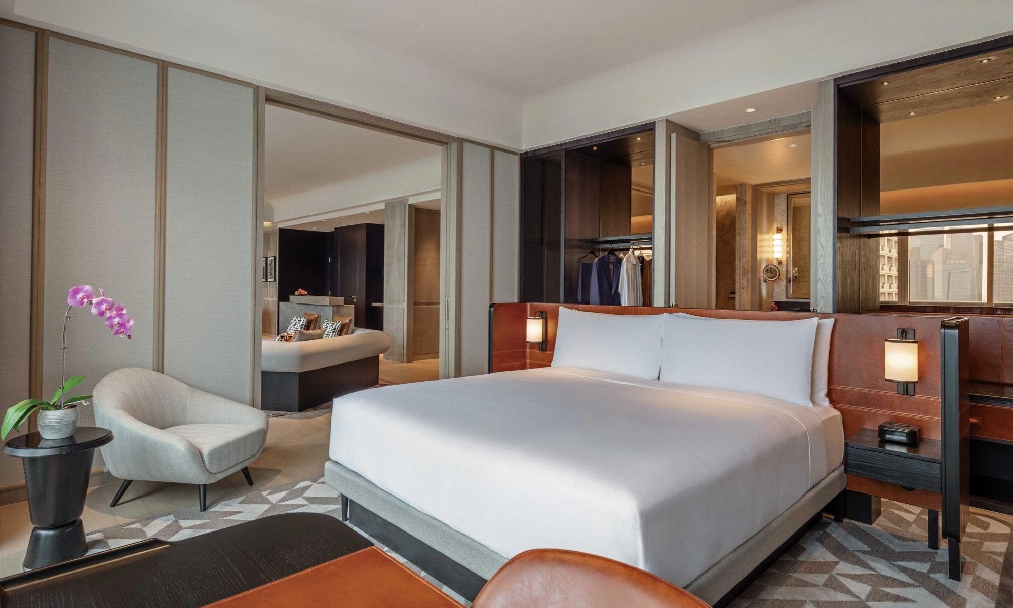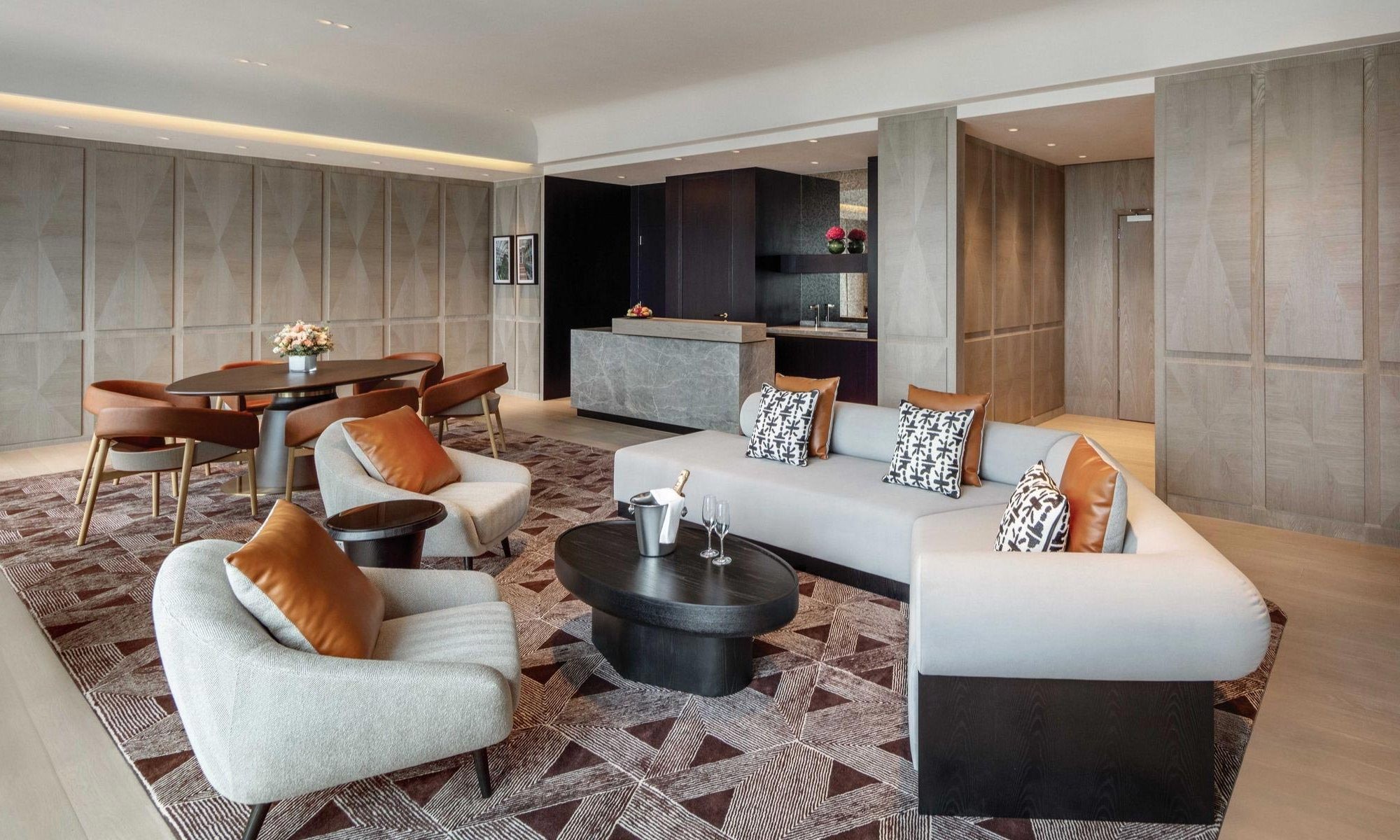 세련된 감각으로 설계된 거버너 스위트는 페어몬트 싱가포르의 최상층에 위치하고 있습니다. 3개의 프라이빗 발코니, 별도의 라운지 및 다이닝 에어리어를 갖춘 이 넓은 스위트는 싱가포르에서의 프리미엄 숙박을 위한 완벽한 선택입니다.