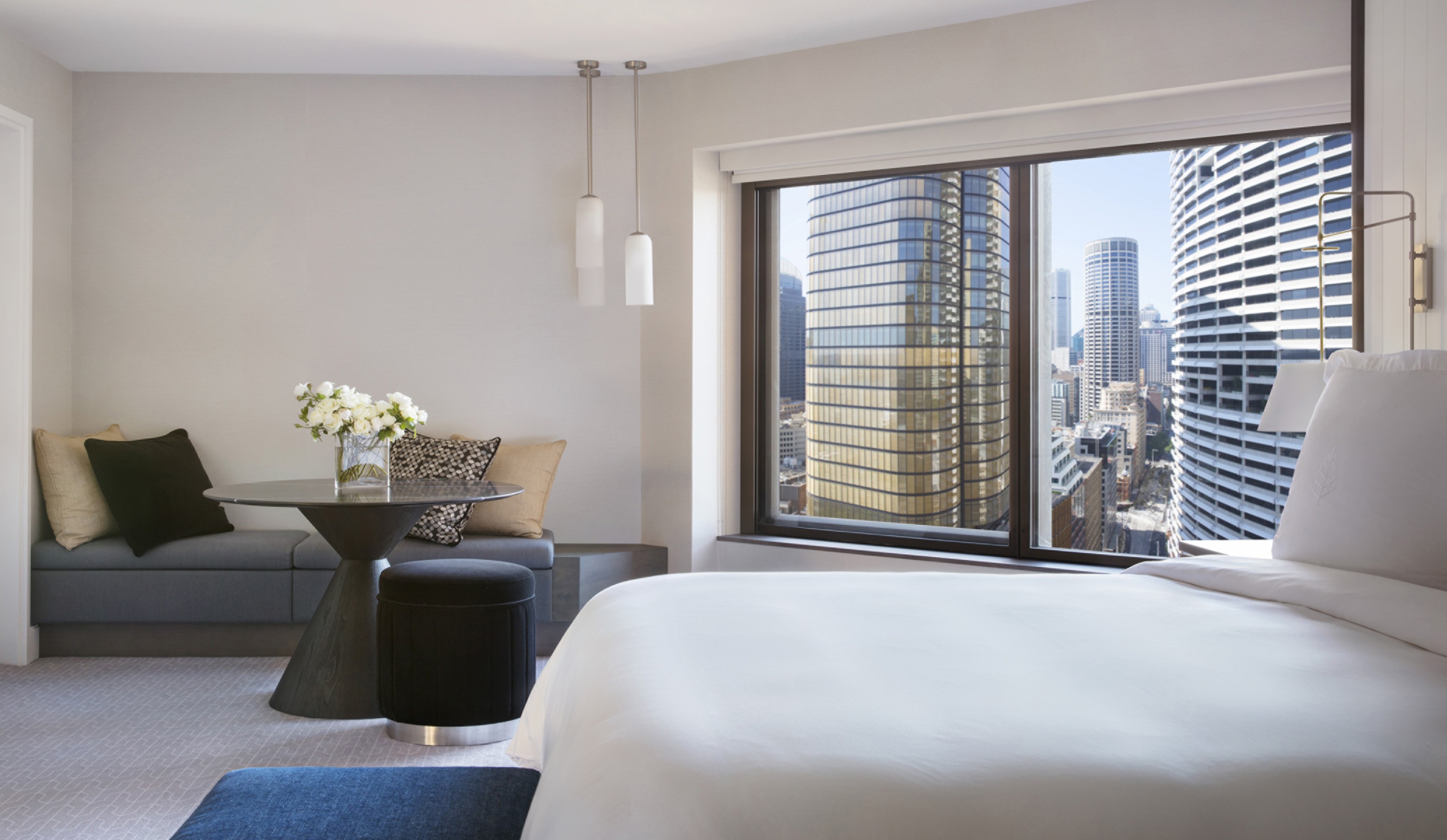 시드니의 활기찬 분위기를 반영하도록 디자인된 포시즌스 호텔 시드니의 시티 스튜디오 스위트는 현대적인 스타일과 파노라마처럼 펼쳐지는 시드니 스카이라인 및 도시 전망이 조화를 이룹니다. 우아한 라운지에서 반짝이는 도시의 불빛을 감상하고 잠들기 전 가벼운 술 한 잔으로 휴식을 취하며 시드니 중심 업무 지구의 중심부에서 세련된 휴식을 경험해 보세요.