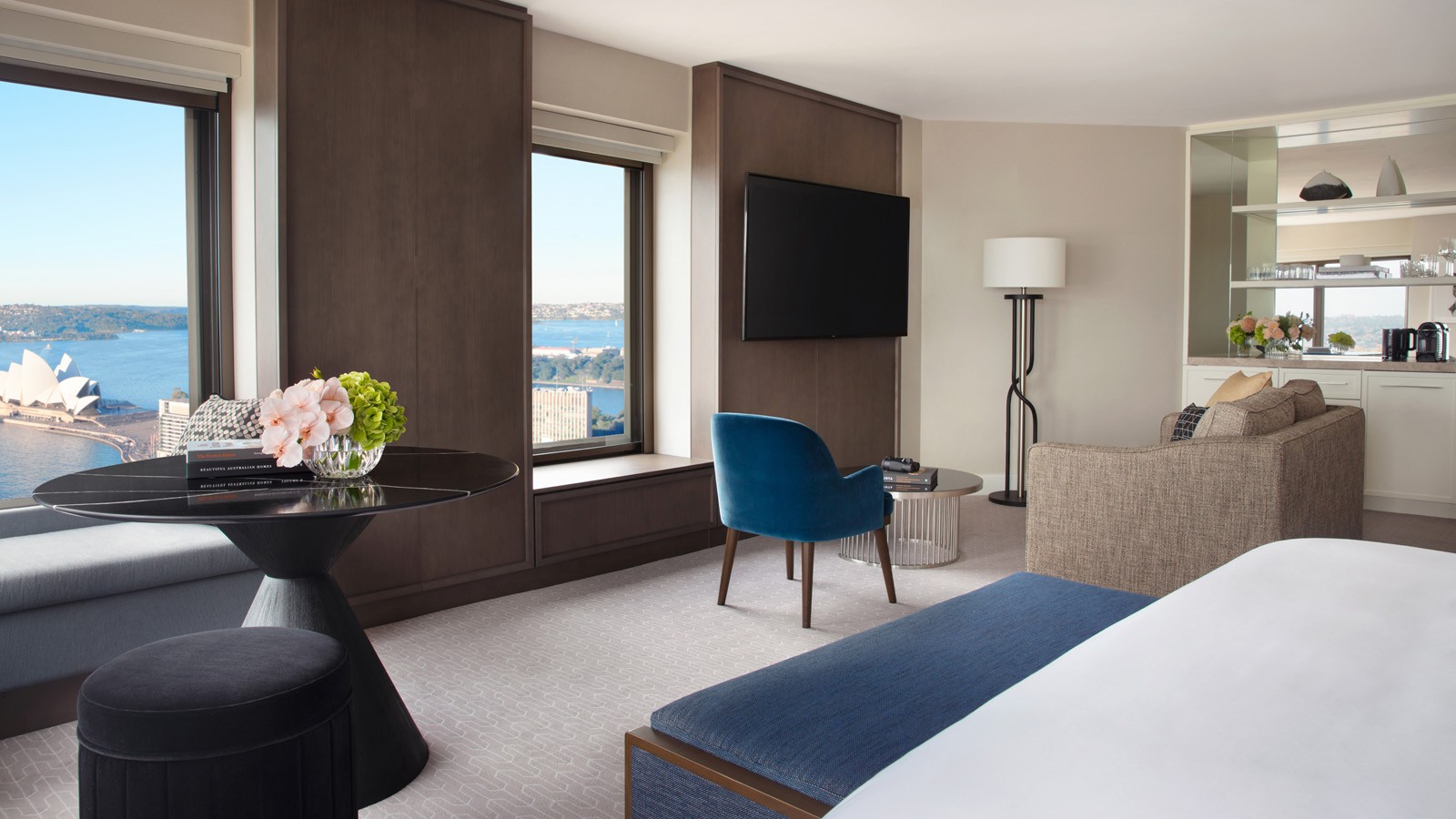 시드니 하버 위에 자리한 넓고 개방적인 구조의 스튜디오 클럽 스위트는 하버 브리지와 오페라 하우스의 파노라믹 뷰를 선사합니다. 자연 채광이 가득한 이 우아한 스위트에서 편안히 휴식을 취하며, 항해하는 요트와 시드니의 가장 상징적인 스카이라인을 감상해 보세요.