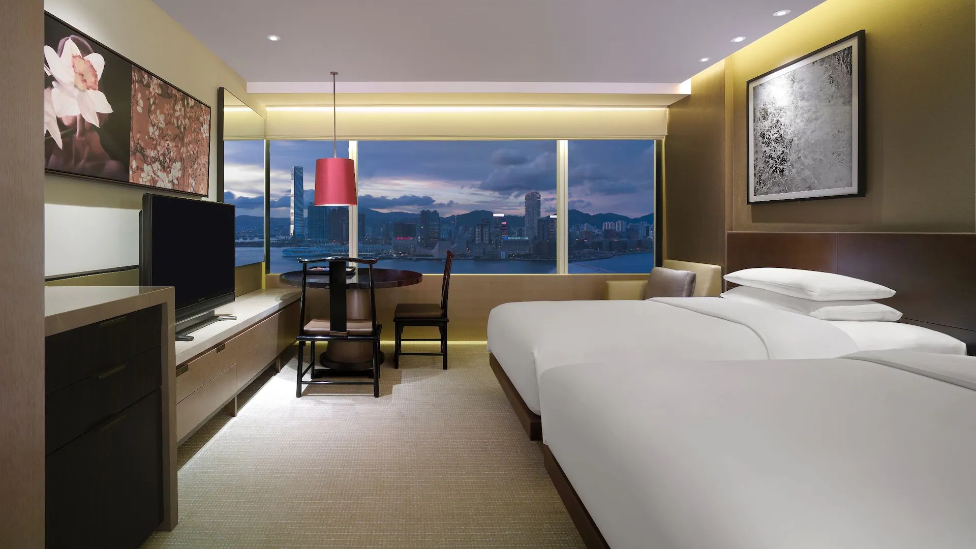 빅토리아 하버가 내려다보이는 40㎡의 인상적인 넓은 공간에서 아늑하고 편안하며 기능적인 객실을 만끽해 보세요.