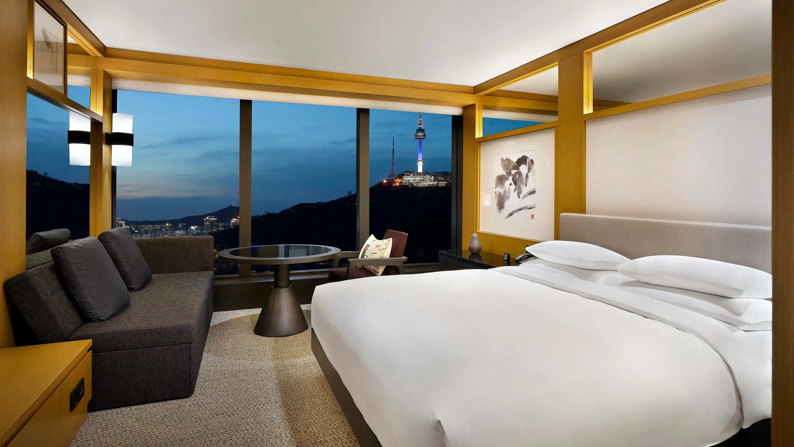 30㎡ (323평방피트) 규모의 이 객실은 킹베드와 따뜻한 골든 오크 가구를 갖추고 있으며, 탁 트인 파노라마 전망을 선사하는 통유리창을 통해 편안한 휴식을 제공합니다.