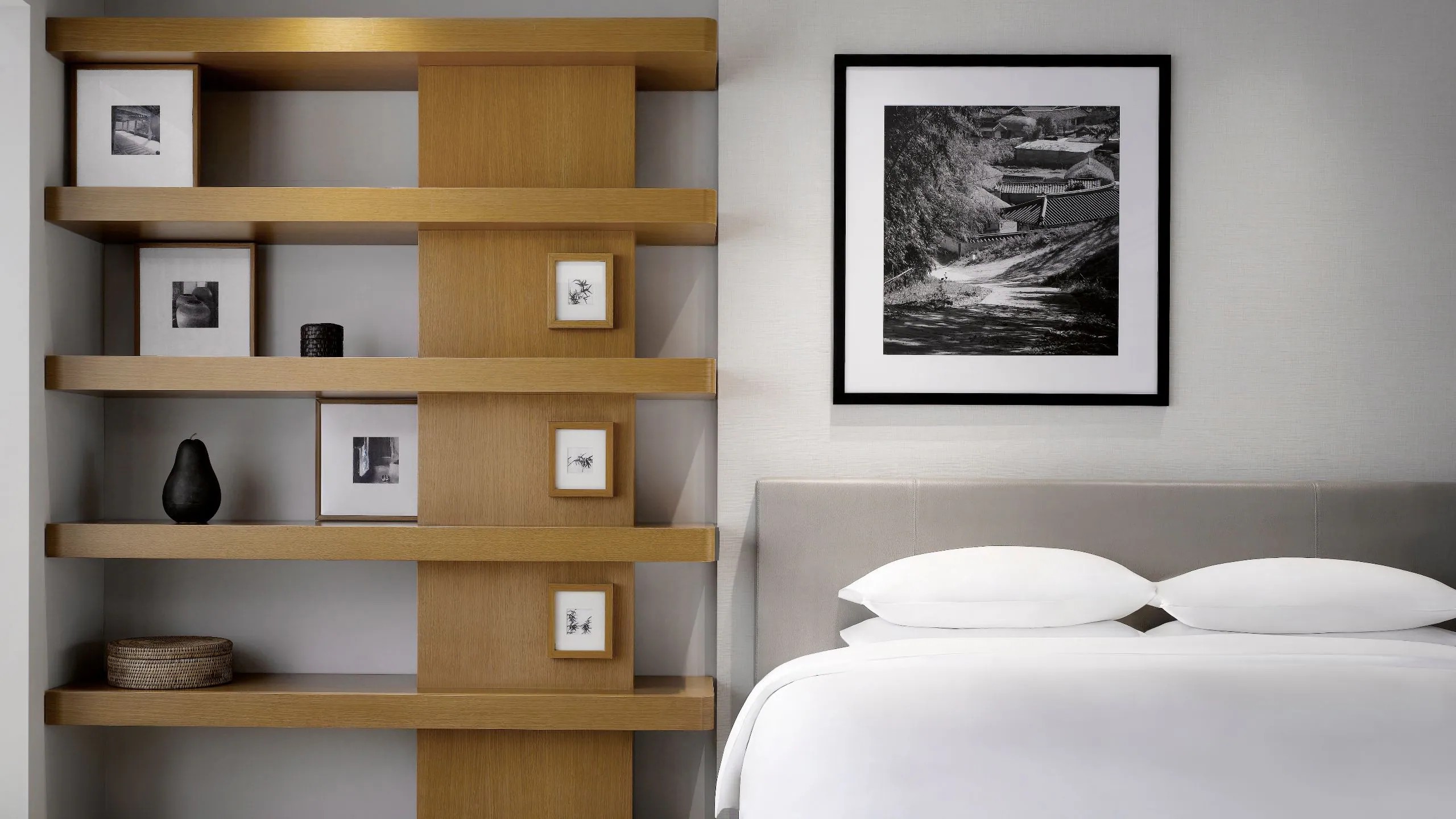 45㎡의 넓은 코너룸으로, 개방형 구조와 환상적인 남산 전망을 자랑하며, 현대적인 가구가 조화를 이룹니다.
