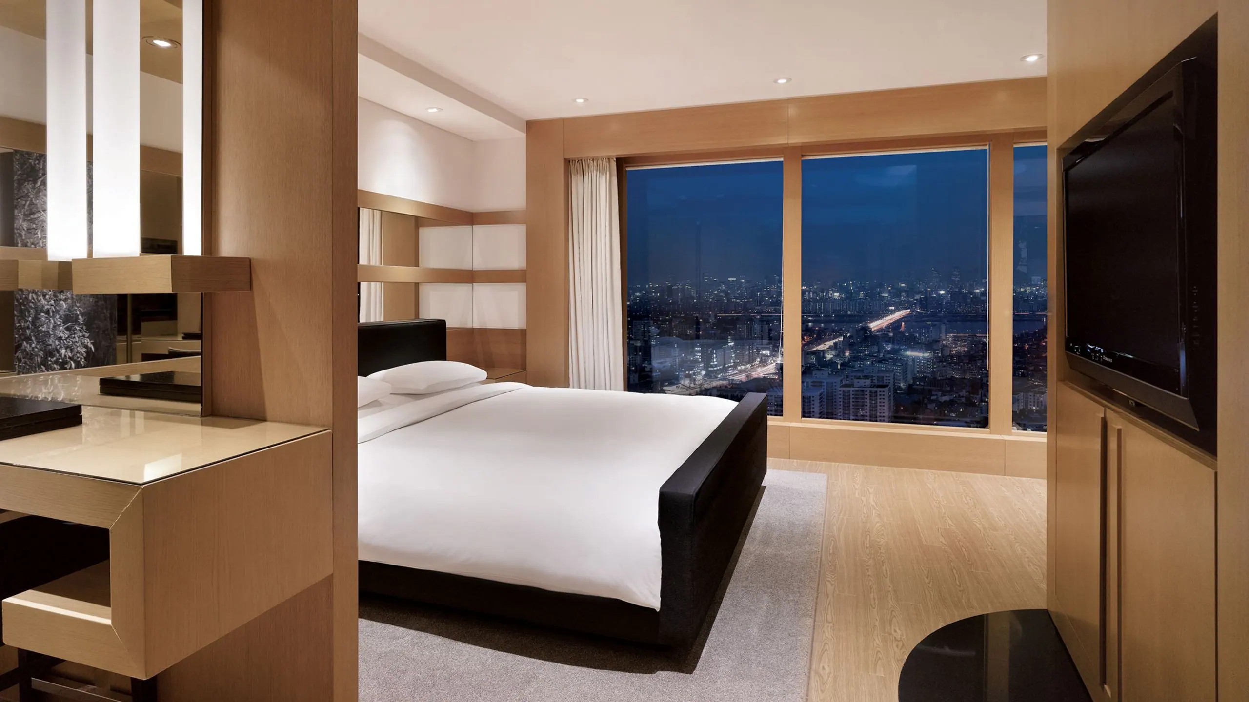 그랜드 스위트는 넓은 라운지 공간, 럭셔리한 킹 베드, 고객의 편안함을 위해 설계된 워크인 샤워 시설을 갖춘 메인 욕실을 자랑합니다. 스탠다드 스위트룸입니다. 이브닝 칵테일 시간에는 만 13세 미만 아동의 그랜드 클럽 라운지 입장이 제한됩니다.