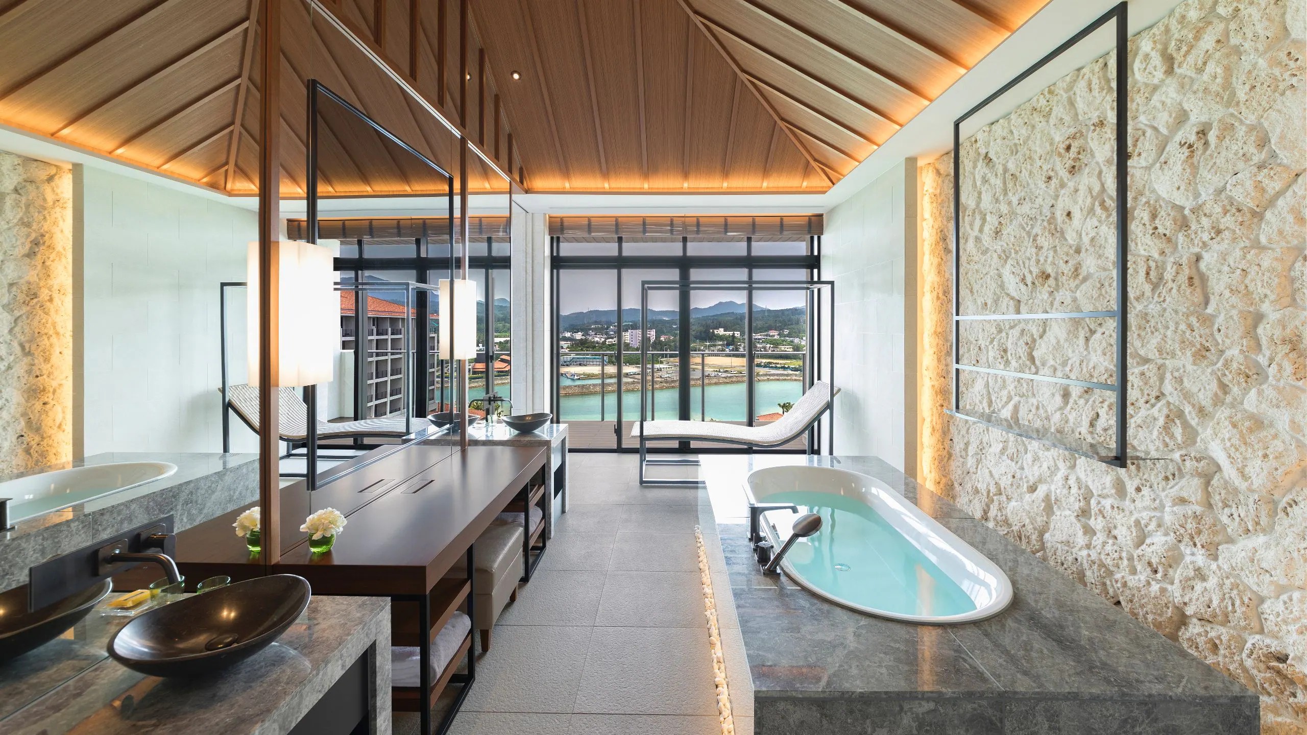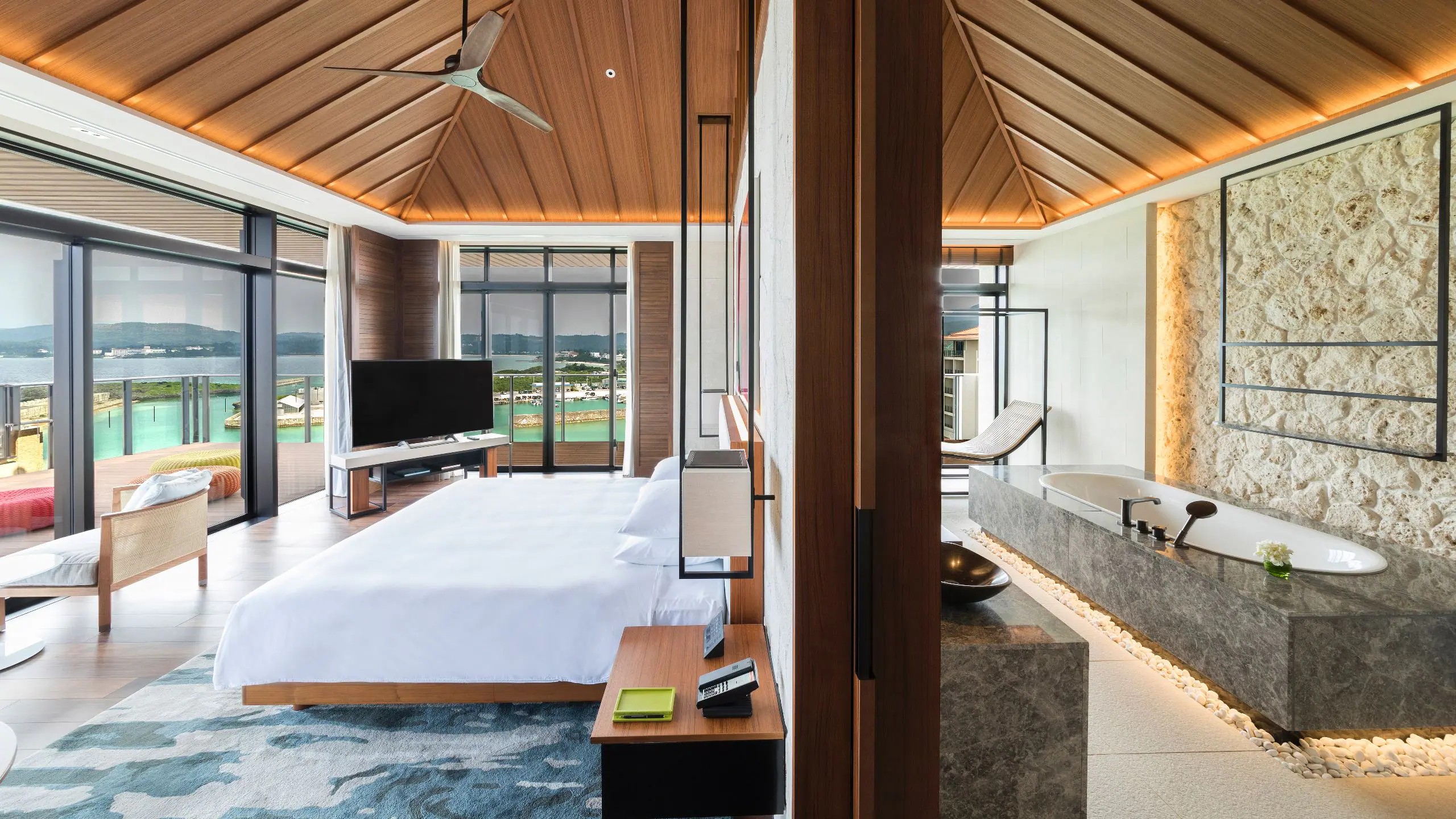 오키나와 본섬 서쪽 해안을 따라 3방향의 웅장한 오션 뷰를 자랑하는 157㎡의 넓은 발코니가 있는 181㎡ 규모의 최고급 스위트입니다. 세련되게 꾸며진 거실과 다이닝 에어는 프라이빗 복도로 침실과 욕실과 분리되어 있습니다. 침실에는 넓고 쾌적한 킹베드가 구비되어 있으며, 침실 인접한 우아한 욕실에서는 오션 뷰를 감상하며 더욱 럭셔리한 경험을 즐길 수 있습니다. 리젠시 클럽 라운지 이용으로 체크인/체크아웃, 무료 조식, 가벼운 음료 및 저녁 칵테일 서비스를 이용할 수 있습니다.