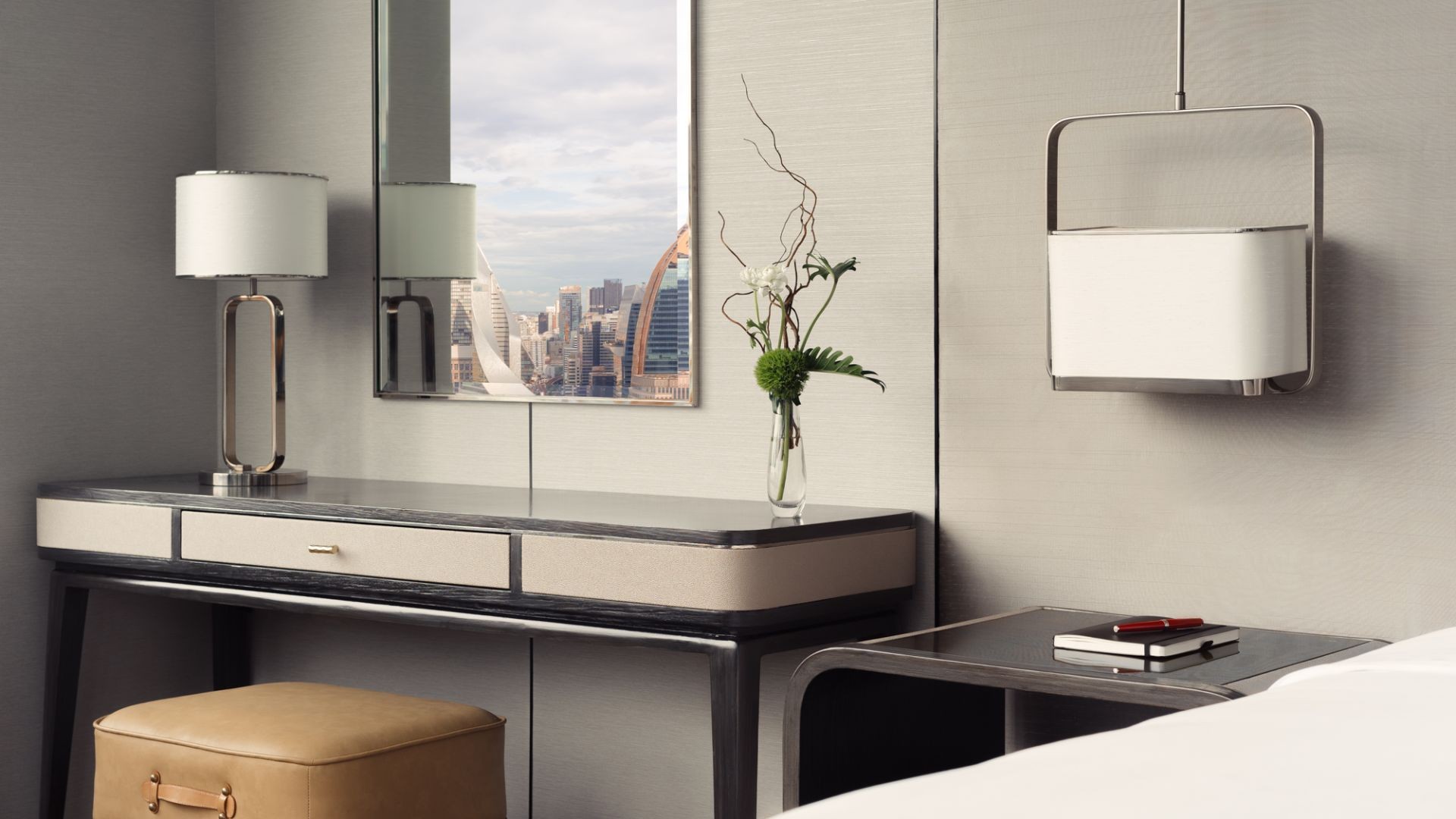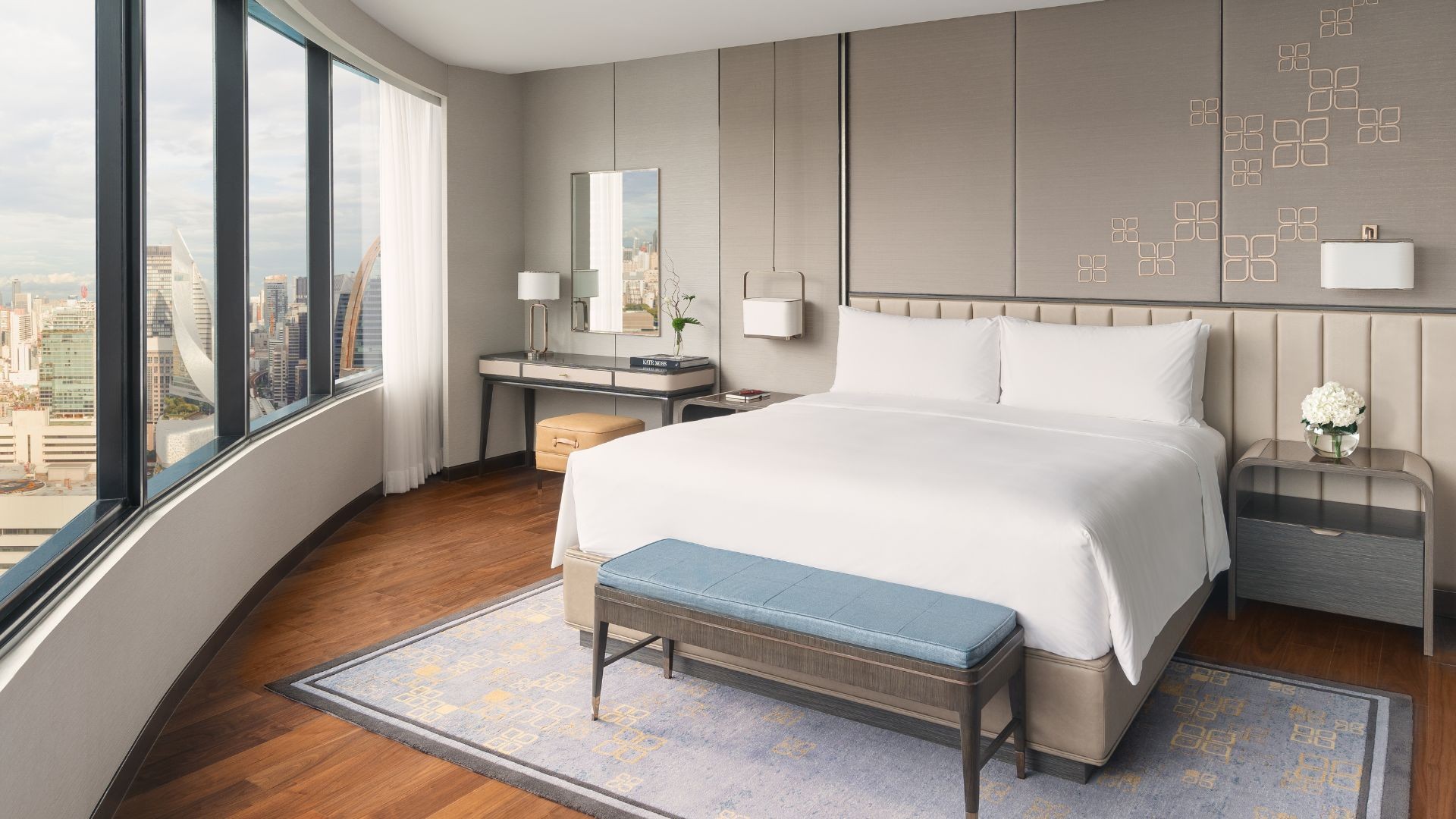 주니어 스위트의 전용 라운지룸으로 들어서면 편안한 소파, TV, 업무용 책상, 우아하게 디자인된 예술 작품이 마련되어 있습니다. 라운지에서 문을 통해 연결되는 전용 침실에는 고급 침구로 감싸인 킹사이즈 침대가 있습니다. 주니어 스위트는 건물 아치형 부분에 위치하여 침실과 라운지 전체에 걸쳐 넓은 파노라마 창문을 통해 자연 채광이 가득 들어옵니다. 스위트의 욕실은 넓게 배치되어 있으며, 편안한 입욕을 위한 독립형 욕조와 프라이버시 스크린, 대형 레인 샤워, 전용 화장실, 밝게 조명된 세면대가 특징입니다. 주니어 스위트에는 스위스 럭셔리 브랜드 쇼파드(Chopard) 욕실 어메니티가 제공됩니다.