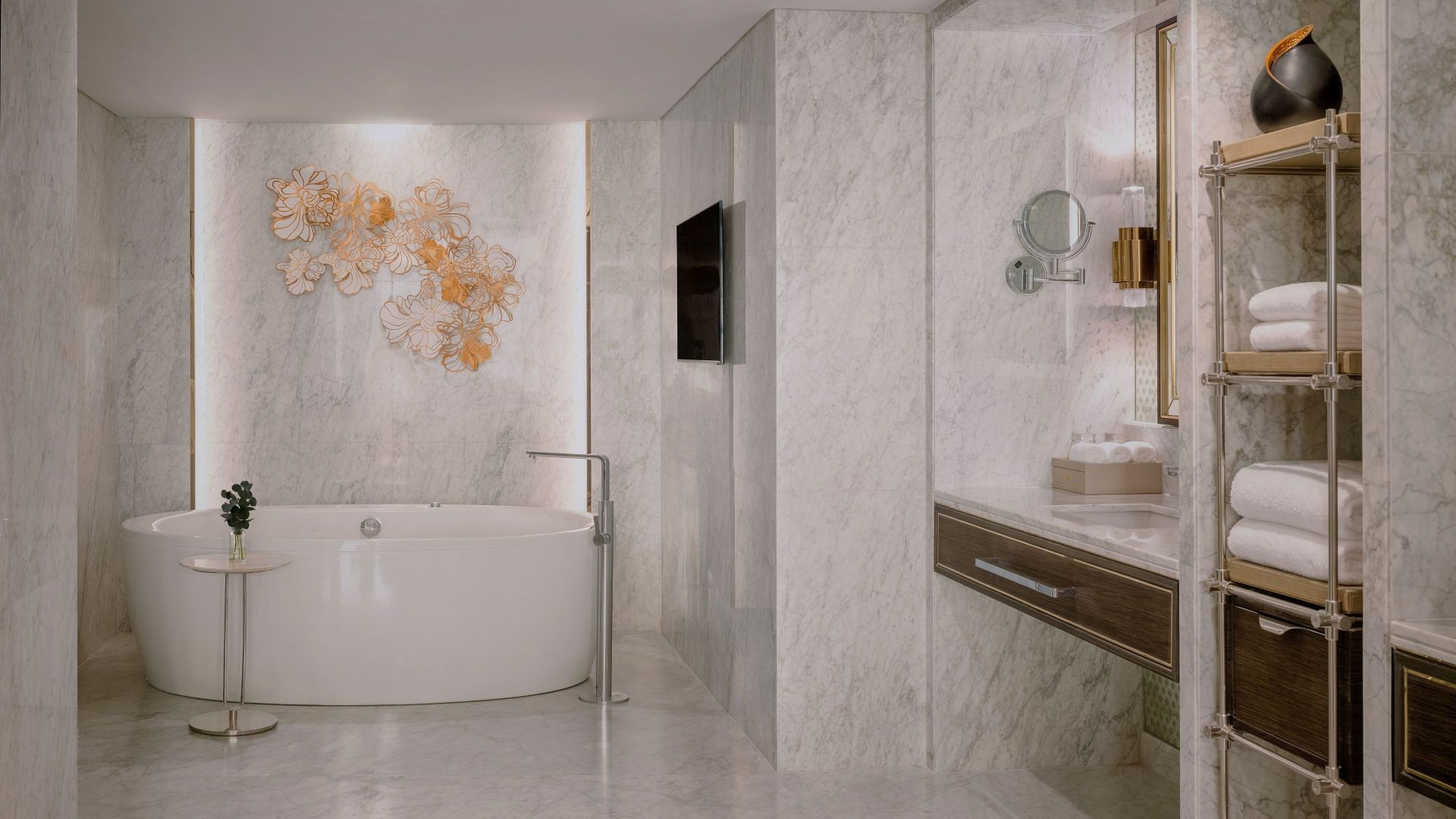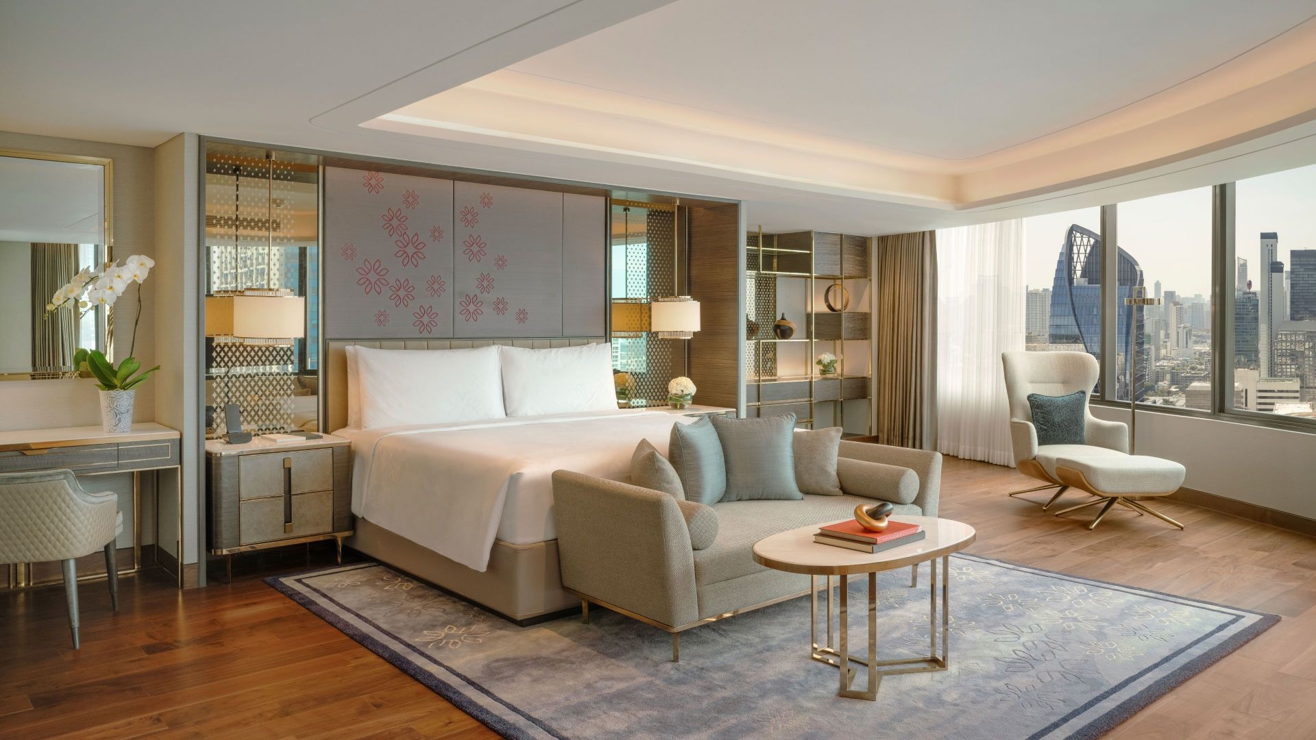 인터컨티넨탈 방콕의 가장 넓은 객실로 250㎡ 규모를 자랑하며, 스타일리시한 럭셔리의 진정한 안식처입니다. 아름답게 장식된 현관은 손님과 방문객을 맞이하기에 적합합니다. 우아한 가구와 예술 작품으로 꾸며진 거실과 스위트룸 전체에서 엔터테인먼트를 개인화할 수 있는 크롬캐스트 TV를 갖추고 있습니다.