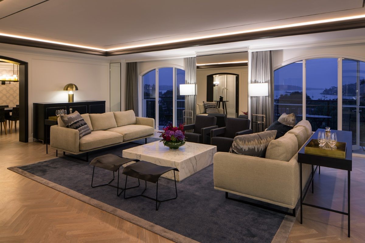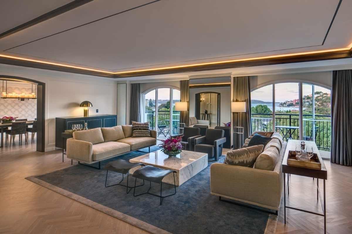 호텔 최상위 스위트로, 4개의 프라이빗 발코니에서 시드니 항구 전망을 감상할 수 있습니다. 버틀러 키친과 8인 다이닝 테이블, 개인 서재, 드레스룸, 파우더룸을 갖춘 레지덴셜 구조이며, 클럽 인터컨티넨탈 혜택(조식, 애프터눈 티, 저녁 칵테일, 전용 체크인/아웃)이 포함됩니다.