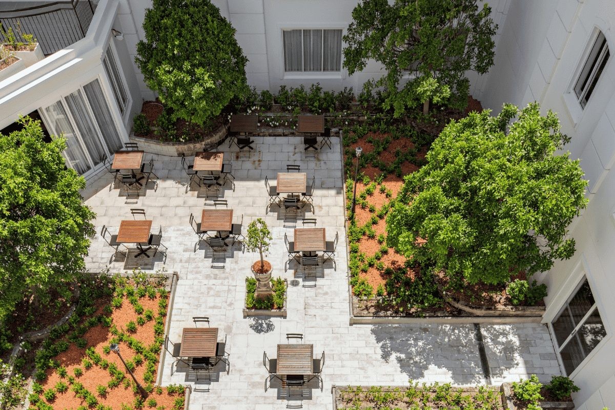 코트야드와 정원 전망의 킹베드 객실로, 줄리엣 발코니와 자연 채광이 풍부한 넓은 창문을 갖추고 있습니다. 별도 욕조와 워크인 샤워가 있는 넓은 욕실이 제공되며, 일부 객실은 반려동물 동반 가능(요금 별도)합니다.