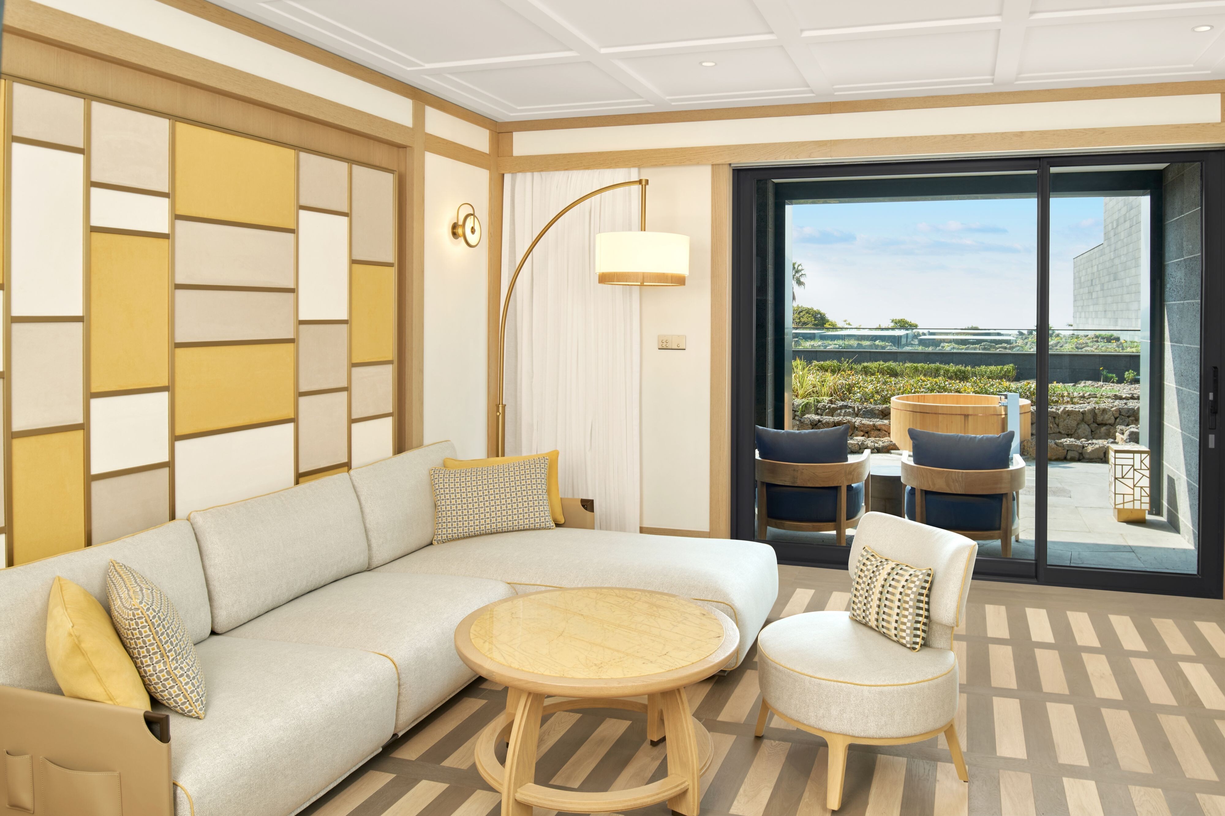 가든 이용이 가능한 프리미엄 스위트입니다. 킹베드 1개, 미니 냉장고, 90㎡의 넓이, 거실 공간, 별도의 거실을 갖추고 있습니다. 무료 무선 및 유선 인터넷, 커피/차 메이커가 제공됩니다.
