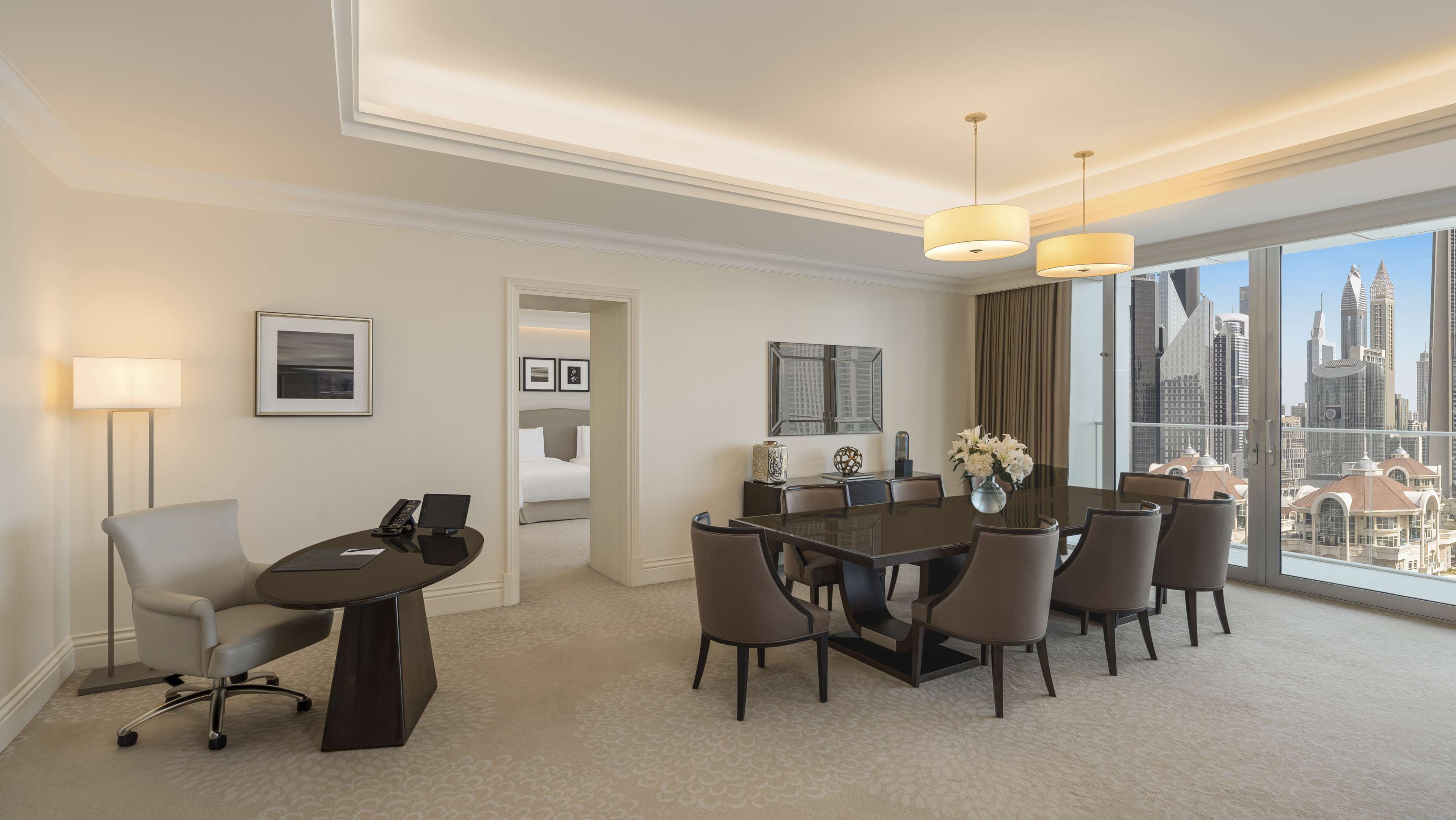 225㎡ 규모의 시그니처 스위트는 비할 데 없는 럭셔리함과 매혹적인 도시 스카이라인 뷰를 선사합니다. 이 세련된 침실 2개 유닛은 최첨단 디지털 기능, 흠잡을 데 없는 객실 내 서비스, 넓은 라운지 공간을 자랑합니다. 잊지 못할 두바이 숙박을 위한 완벽한 공간입니다. 자동 객실 내 TV 서비스의 편리함과 무료 두바이 국제공항 픽업/샌딩 서비스를 즐겨보세요. 두바이 돌고래 수족관, 글로벌 빌리지, 마담 투소 또는 Rayna Tours와 제휴하여 제공되는 시티 투어 중 선택하여 두바이 최고의 명소 중 한 곳에서 무료 체험을 즐겨보세요.