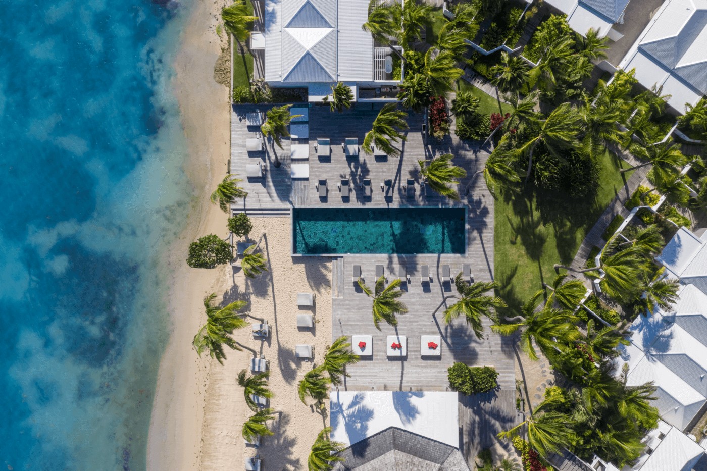 최고의 안락함을 자랑하는 그랜드 스위트 플라지는 해변 바로 앞에 위치하며, 모두 숨 막히는 그랜드 쿨드삭 라군을 내려다보고 있어 환상적인 바다 전망을 선사합니다. 세련되고 고요한 이 넓고 호화로운 스위트룸은 생 바르텔레미 섬 특유의 여유로운 분위기를 자아냅니다. 탁 트인 바다 전망을 제공하는 스위트룸에는 새롭게 꾸며진 해변 테라스와 스위트룸 입구 앞에 산책 가능한 정원이 있습니다. 그랜드 스위트 플라지 쉬드와 함께 르 세레노 호텔 생 바르텔레미 객실의 3분의 2를 차지하며 가장 인기 있는 숙박 옵션입니다. 그랜드 스위트 플라지는 바다가 보이는 4주식 침대, 책상, 라운지 가구가 비치된 야외 목재 데크, 소파, 리에이그르의 시그니처 거울 및 르 세레노를 위해 특별히 디자인된 다양한 가구를 갖추고 있습니다. 넓은 욕실은 이국적인 목재로 꾸며져 있으며 화강암 세면대, 깊은 욕조, 별도의 샤워실, 별도의 화장실, 헤어드라이어, 목욕가운을 갖추고 있습니다. 모든 그랜드 스위트 플라지에는 에어컨, 천장 선풍기, 금고, 개인 바, 평면 TV, 위성 TV 네트워크, iPod 스테이션 및 iPod, DVD 플레이어, 직통 전화, 무료 무선 고속 인터넷, 요청 시 iPad 및 네스프레소 커피 메이커가 구비되어 있습니다. 스위트룸에는 실내 거실 공간과 바다가 내려다보이는 선데크가 있습니다. 객실 크기는 전용 정원과 휴식 공간을 포함하여 1200평방피트(약 110m²)부터 시작하며, 이 중 750평방피트(약 70m²)에 에어컨이 설치되어 있습니다.