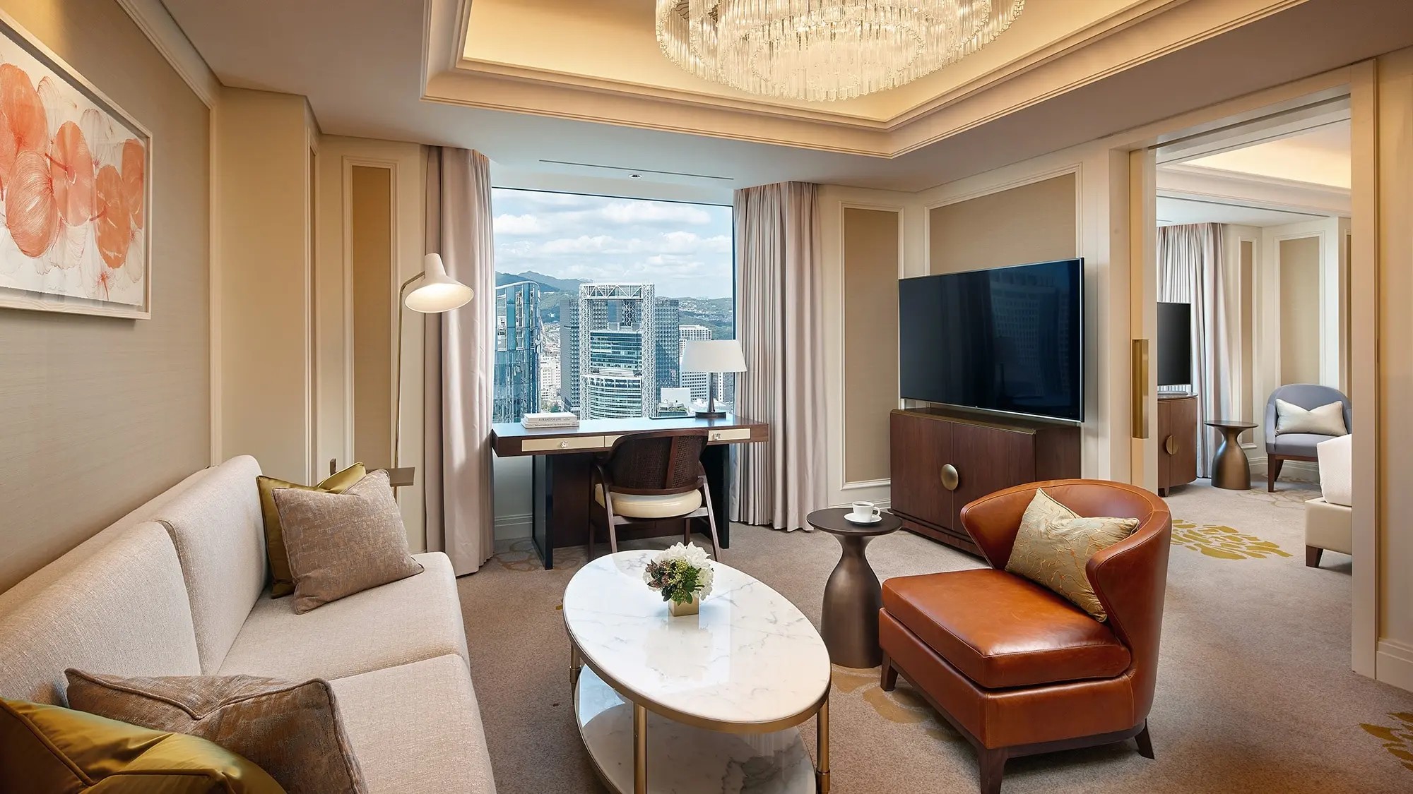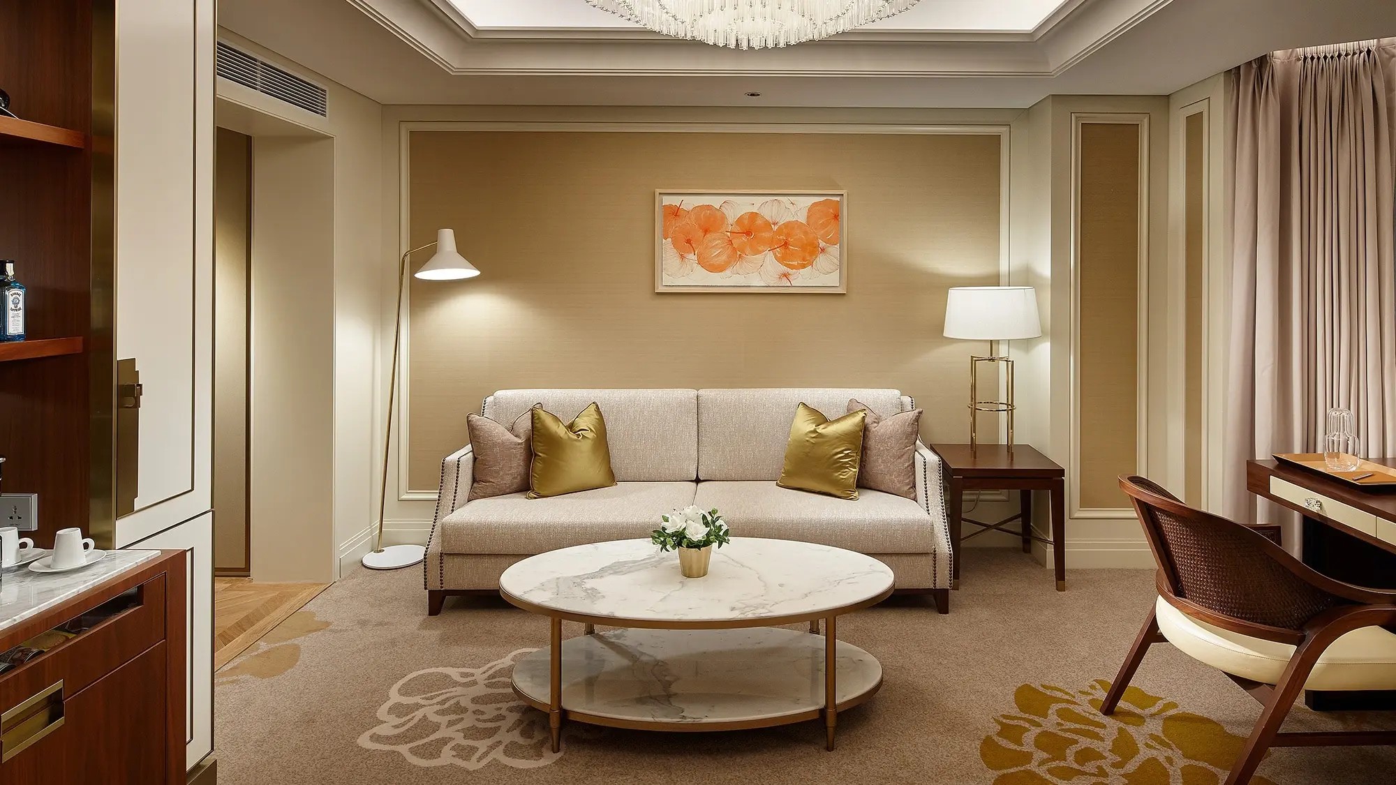 ※상기 객실 이미지는 실제와 다를 수 있습니다.※ 이그제큐티브 타워의 주니어 스위트룸은 클래식한 럭셔리에 모던한 콘셉트를 더했으며, 침실과 거실이 분리되어 있습니다. 낮에는 자연 채광이 가득하며, 골드 패널과 실크 패브릭, 크리스탈 샹들리에가 섬세한 럭셔리를 선사합니다.