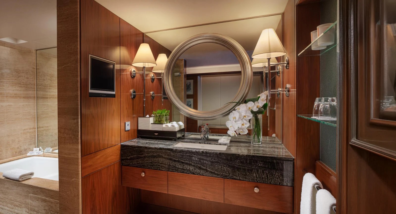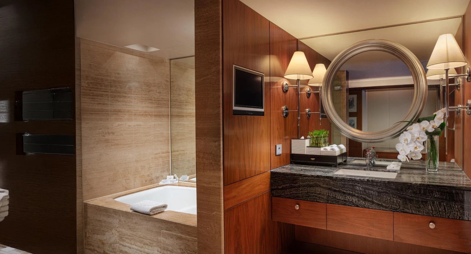 센트럴 지구의 중심부에 위치한 각 객실은 주변 도시 풍경의 멋진 전망을 선사합니다. 동양의 감성을 더한 럭셔리한 주거 공간의 느낌을 더하며, 객실은 풍부한 색감, 고급 가구 및 중국 액세서리로 장식되어 있습니다. 세련된 트래버틴 석재와 인상적인 흑림 중국산 대리석으로 마감한 욕실에는 욕조와 워크인 샤워 시설이 모두 갖춰져 있습니다.
