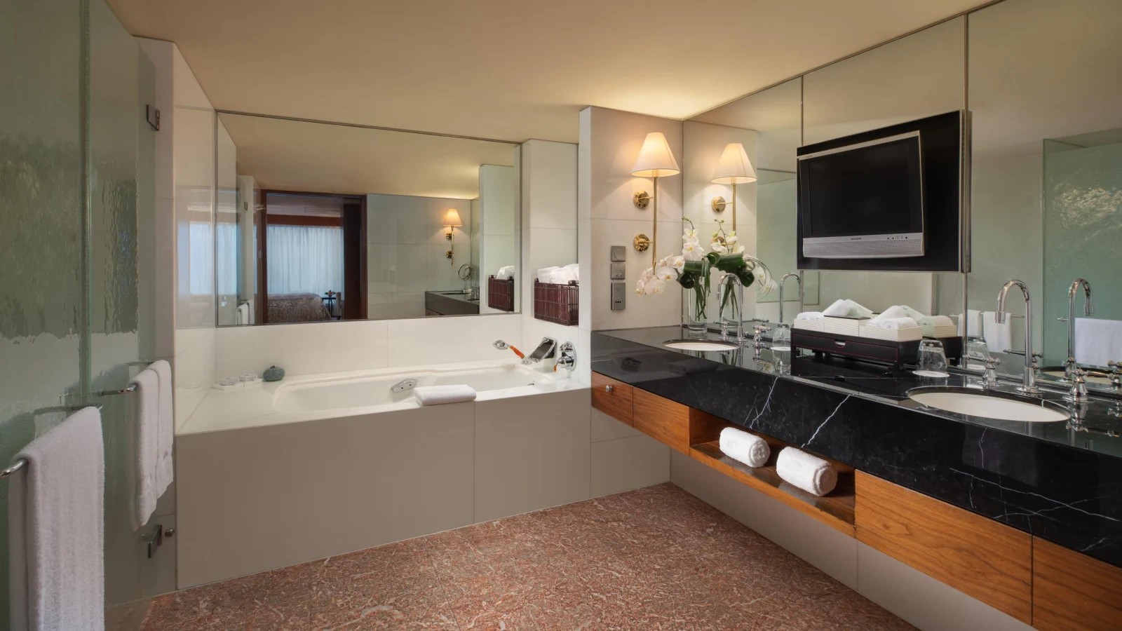광활한 하워스 스위트는 절제된 우아함과 전통적인 영국식 스타일을 물씬 풍기고 있습니다. 반짝이는 도시의 야경과 빅토리아 항구의 전망을 감상할 수 있는 이 스위트는 목재 패널 벽, 크림색 카펫, 벨벳 패브릭, 마호가니와 월넛 목재 가구로 장식된 세련된 인테리어를 자랑합니다. 추가 파우더룸과 첨단 어메니티가 곳곳에 배치되어 있습니다.