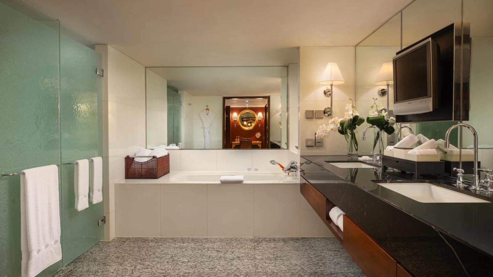포르투갈 식민지 시대 주택에서 영감을 받은 인테리어로 장식된 이 스위트는 호텔 최상층의 탁월한 위치에서 도시의 멋진 전망을 감상할 수 있습니다. 동양 디자인과 서양의 감각을 융합한 이 스위트는 휴식, 이완 및 엔터테인먼트를 위한 우아한 공간을 제공합니다. 객실 전역에 최첨단 기술이 갖춰져 있으며 개인 버틀러 서비스도 이용 가능합니다.