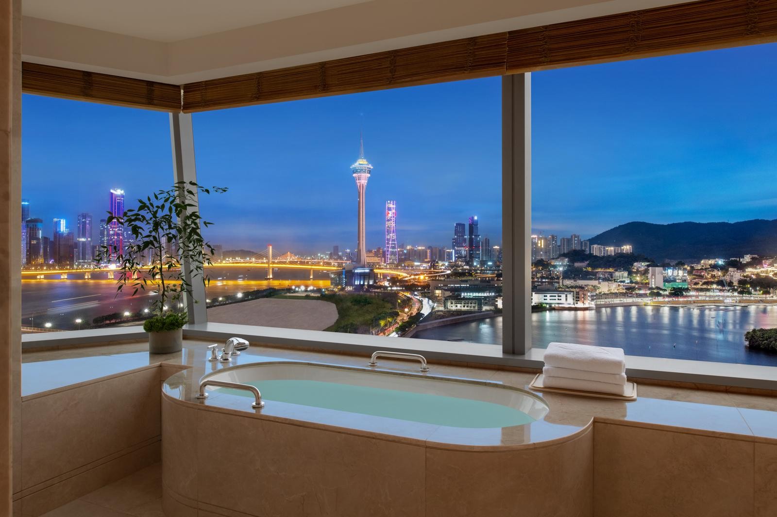 럭셔리, 편안함, 스타일의 매력적인 조화를 선사하는 이 객실은 마카오 만, 타이파 섬으로 향하는 다리, 또는 고요하고 아름다운 남완 호수를 바라봅니다. 현대적 스타일과 동양적 감성을 절묘하게 조화시킨 넓은 침실에는 고급 리넨으로 장식된 킹베드, 업무용 책상, 작은 휴식 공간, 드레스룸이 마련되어 있습니다.