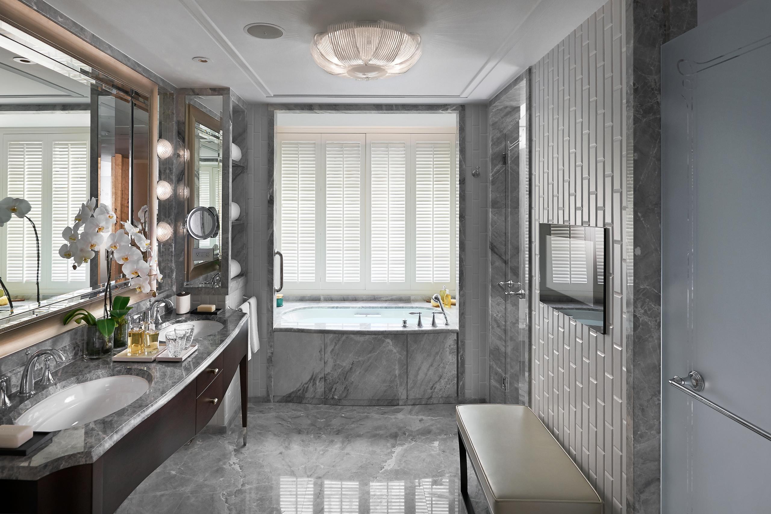 도시의 탁 트인 전망을 자랑하는 이 넓은 스위트는 도심의 삶에서 벗어나 편안한 휴식을 선사합니다. 부드러운 톤의 인테리어, 고급스러운 카펫, 아름답게 제작된 가구로 꾸며져 있으며, 바닥부터 천장까지 이어지는 대형 창문이 특징입니다.