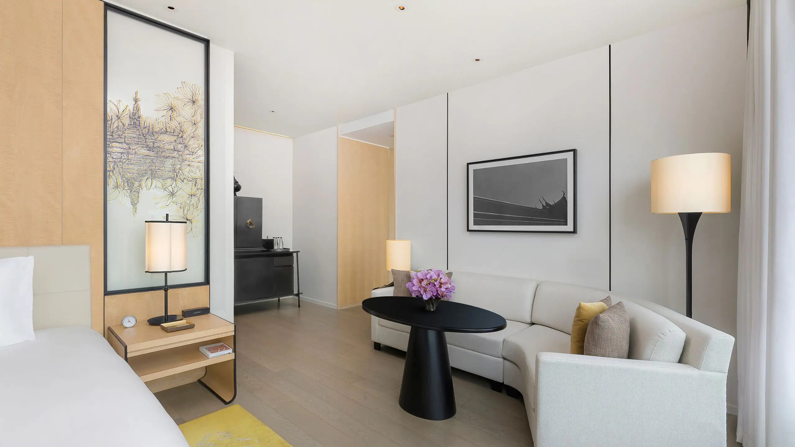 58㎡ 규모의 넓은 객실에서 편안하게 휴식을 취해보세요. 2개의 트윈베드가 마련되어 있으며, 통유리창을 통해 방콕의 멋진 도시 경관을 감상하실 수 있습니다.