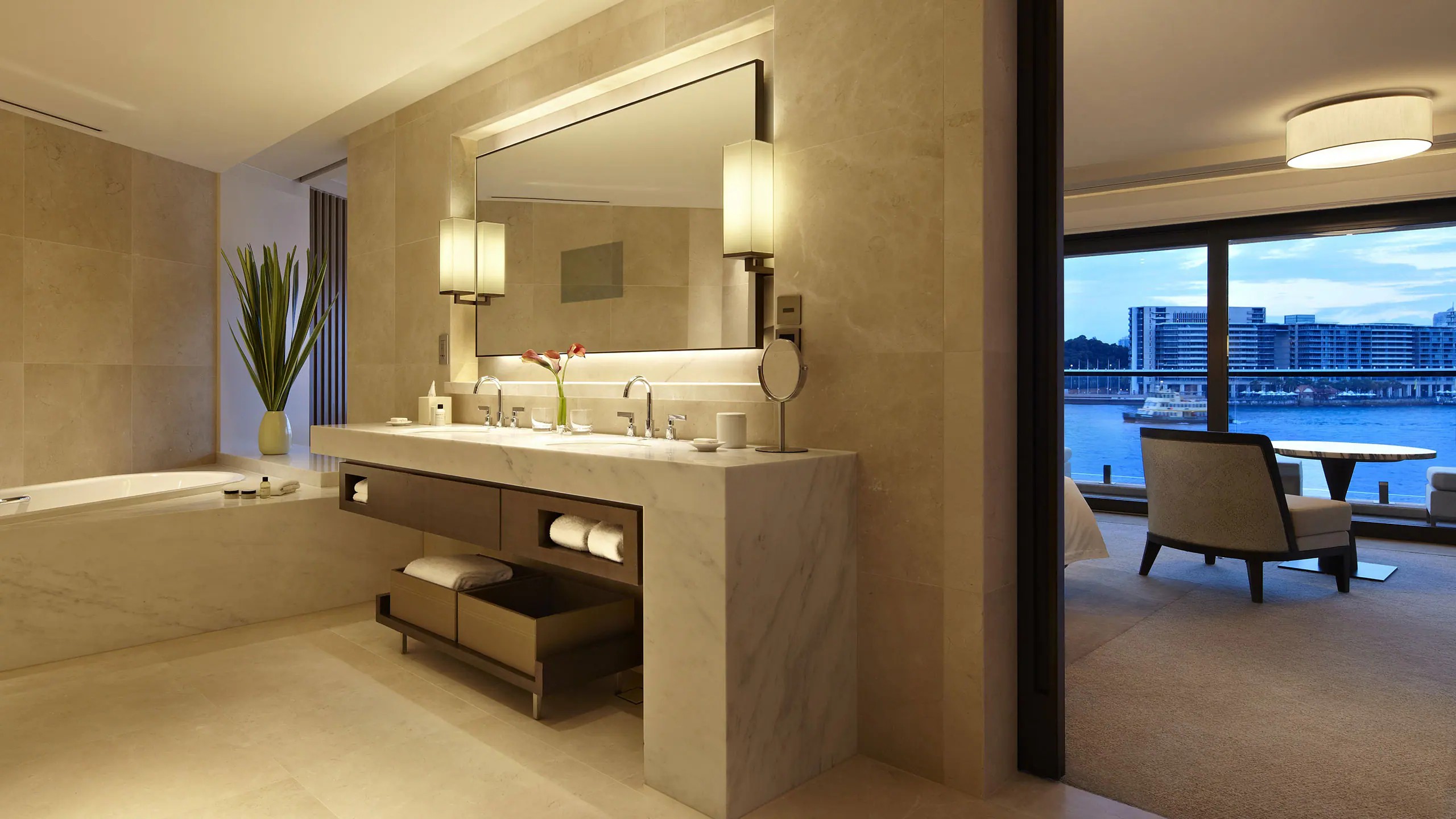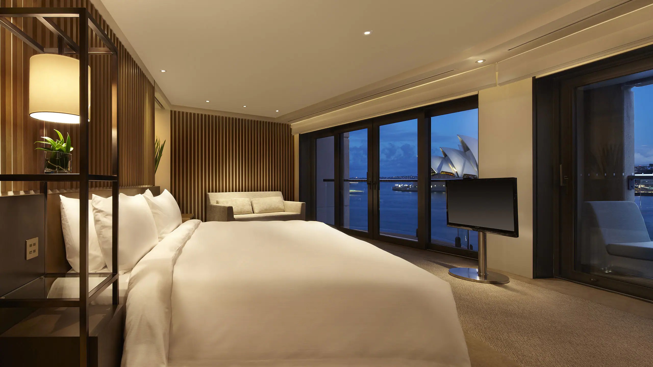 145㎡(1560sqft) 크기의 럭셔리한 원 베드룸 스위트로, 마스터 침실과 넓은 거실 공간을 갖추고 있습니다. 4개의 전용 발코니에서 바라보는 상징적인 시드니 오페라 하우스의 환상적인 전망은 이 스위트의 핵심적인 특징입니다. 추가 요금 지불 시 투 베드룸 구성으로도 이용 가능합니다. 이 객실은 스페셜티 스위트입니다.