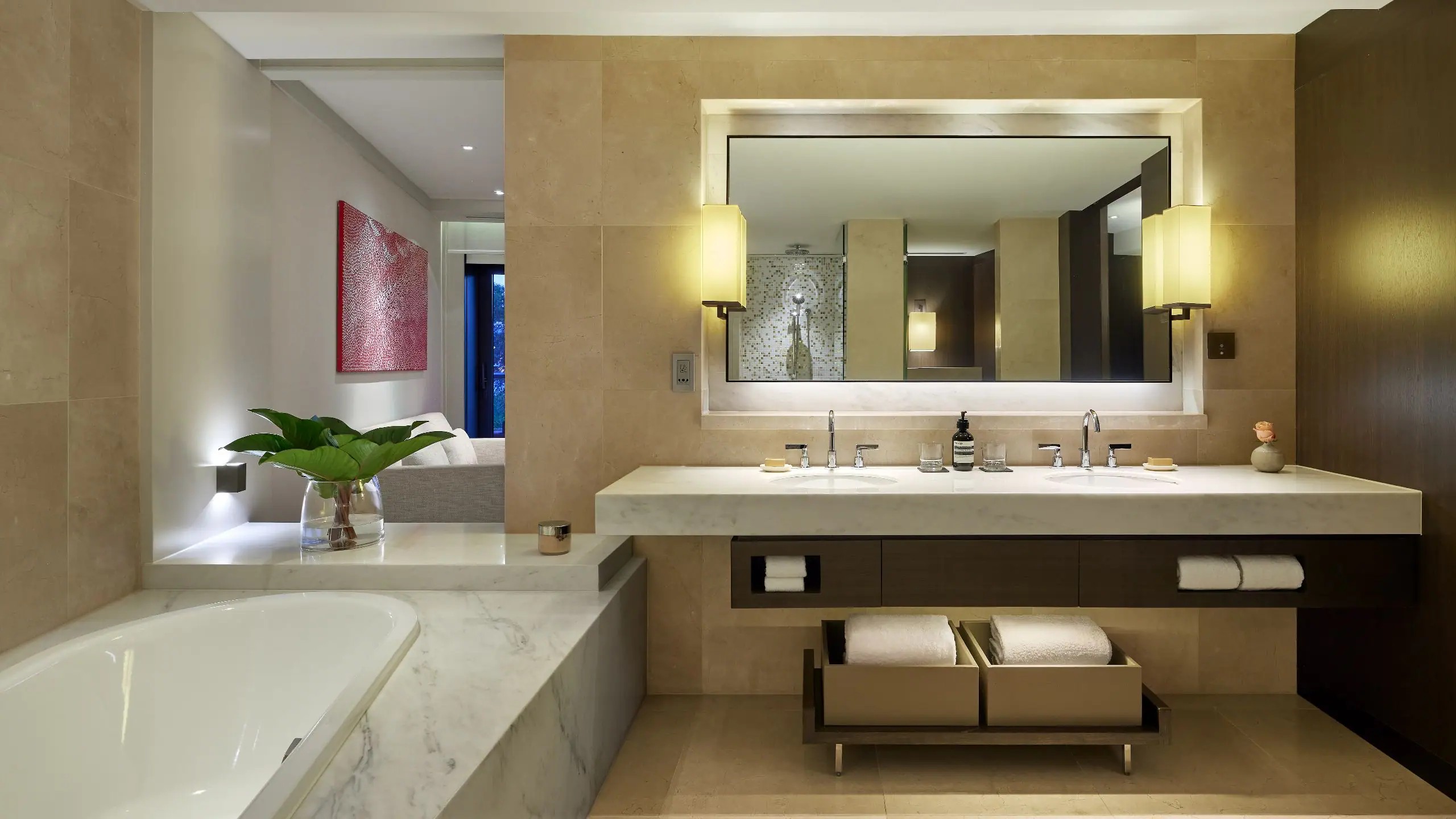 185㎡(1991sqft) 면적의 이 럭셔리한 원 베드룸 스위트는 시드니의 세계적인 상징인 오페라 하우스와 하버 브리지의 독보적인 전망을 제공합니다. 넓은 거실, 8인용 다이닝룸, 완비된 주방, 넉넉한 크기의 욕실뿐만 아니라 6개의 전용 발코니도 갖추고 있어 항구의 풍경을 즐기며 호화로운 휴식을 만끽할 수 있습니다. 이 객실은 스페셜티 스위트입니다.