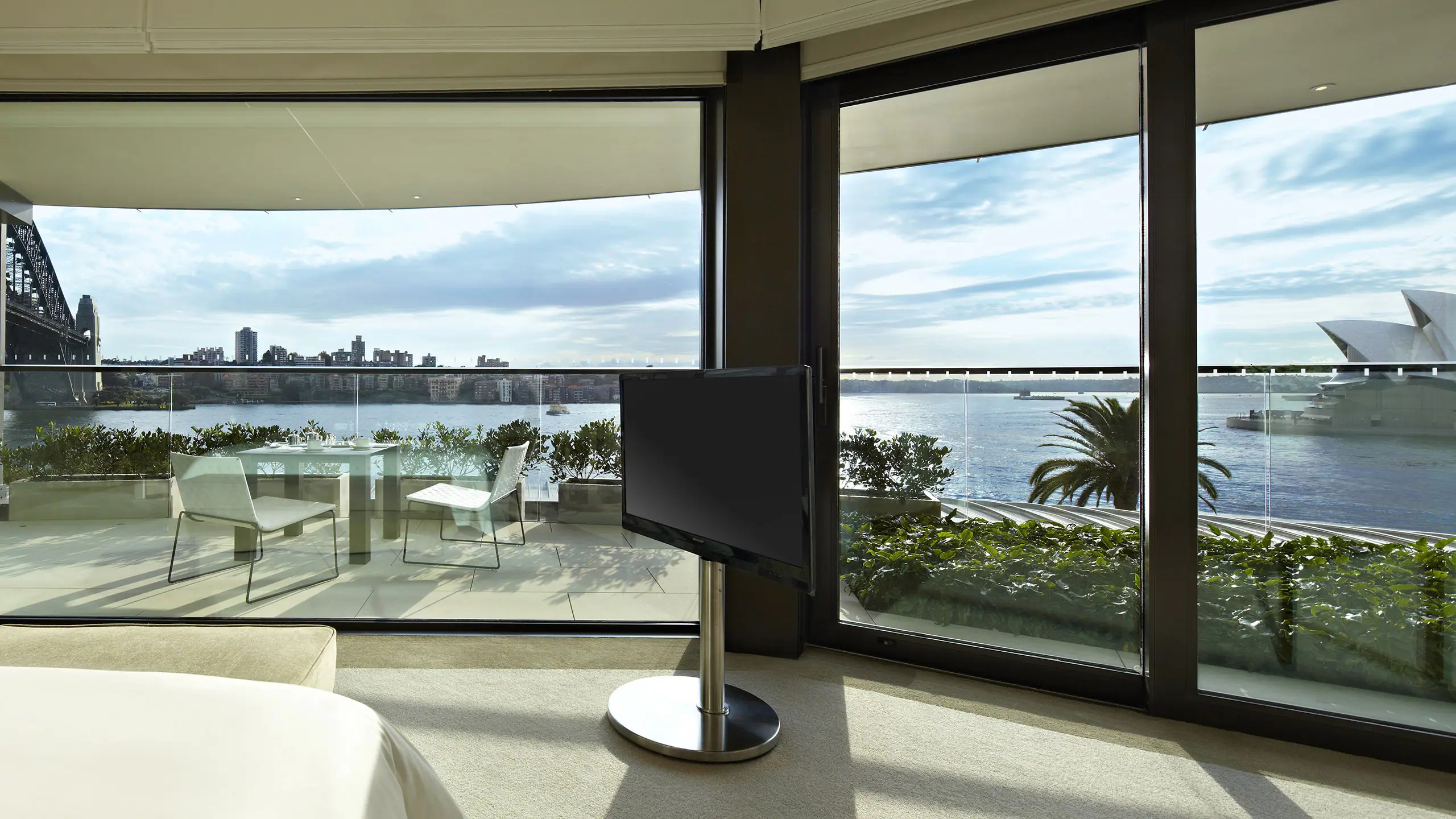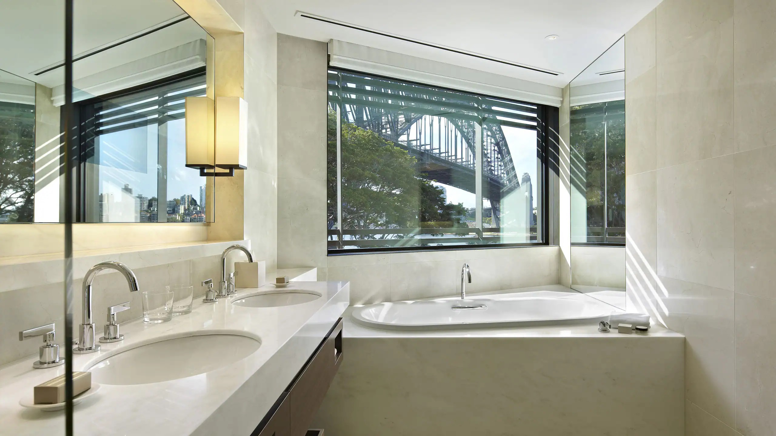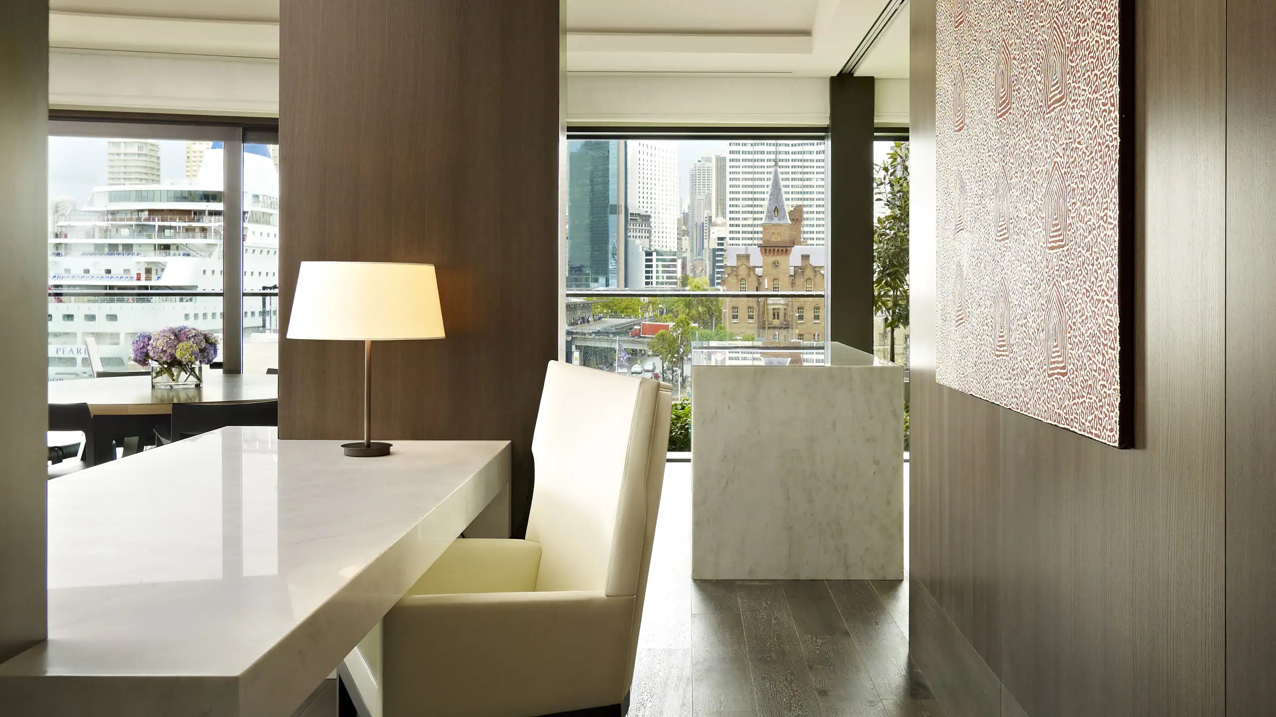 최고의 안목을 지닌 고객들을 위한 이 투 베드룸 스위트는 시드니에서 타의 추종을 불허하며, 350㎡(3853sqft)의 고급스러운 공간을 자랑합니다. 하버 브리지부터 시드니 오페라 하우스까지 이어지는 파노라믹 전망을 갖춘 프라이빗 야외 테라스는 모두가 선망하는 워터프런트 입지를 잘 보여줍니다. 현대적인 시설로는 최첨단 주방, 8인용 실내 다이닝 공간, 85인치 LED TV, 홈 엔터테인먼트 시스템, 그리고 중앙 벽난로를 중심으로 디자인된 넓은 거실이 있습니다. 스위트의 마스터 욕실에는 넓은 샤워 공간, 스파 욕조, 건식 사우나 및 스팀룸이 마련되어 있습니다. 객실을 감싸는 프라이빗 테라스에는 선라운저와 6인용 야외 다이닝 공간이 갖춰져 있습니다. 이 객실은 스페셜티 스위트입니다. 자세히 보기