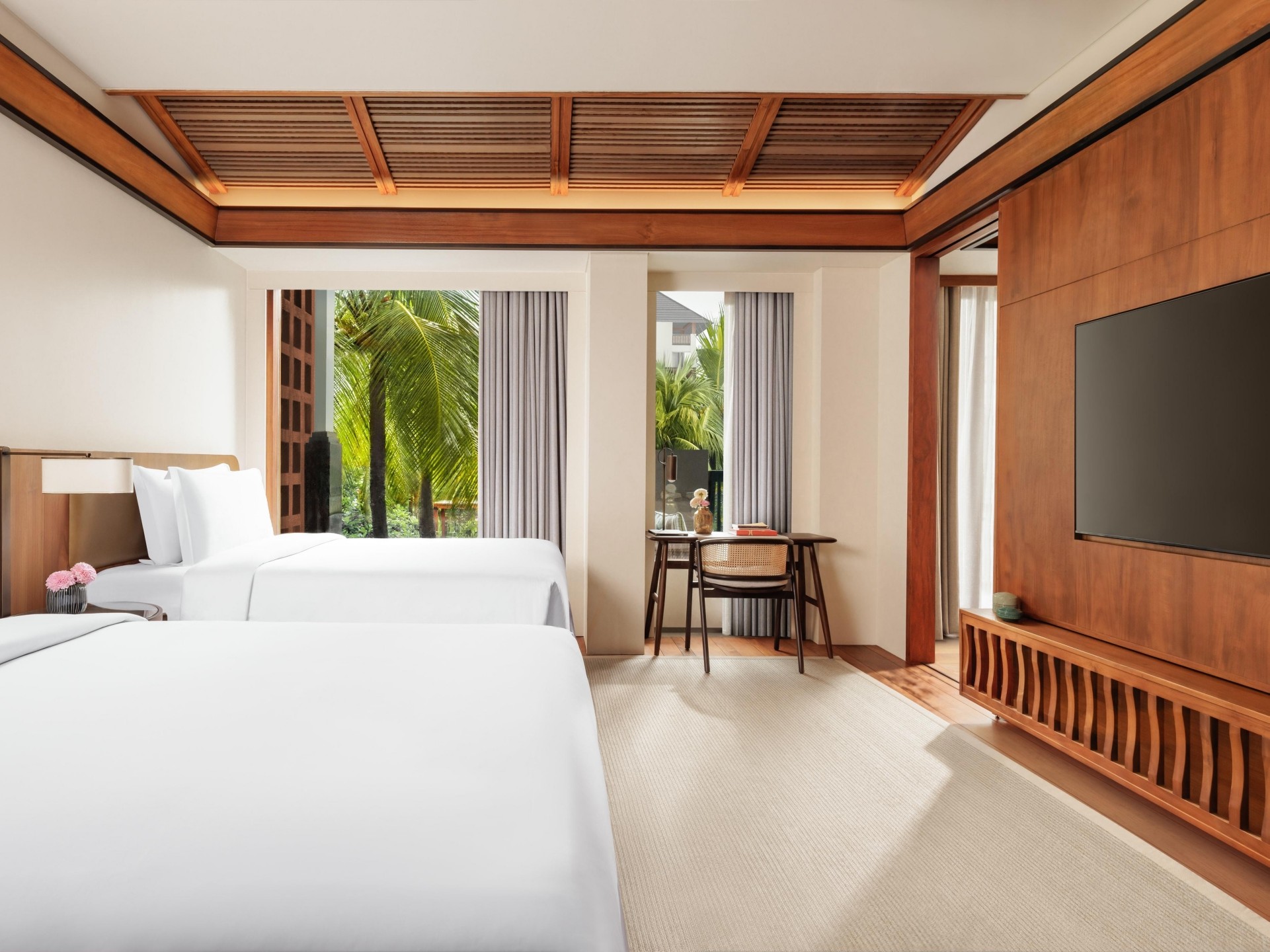 가족 여행객을 위해 맞춤 설계된 이 넓은 스위트는 침실 2개를 갖추고 있으며 고요한 라군으로 바로 연결됩니다. 넉넉한 실내외 공간, 전용 테라스, 발리의 장인 정신이 깃든 욕실이 조화를 이룹니다.