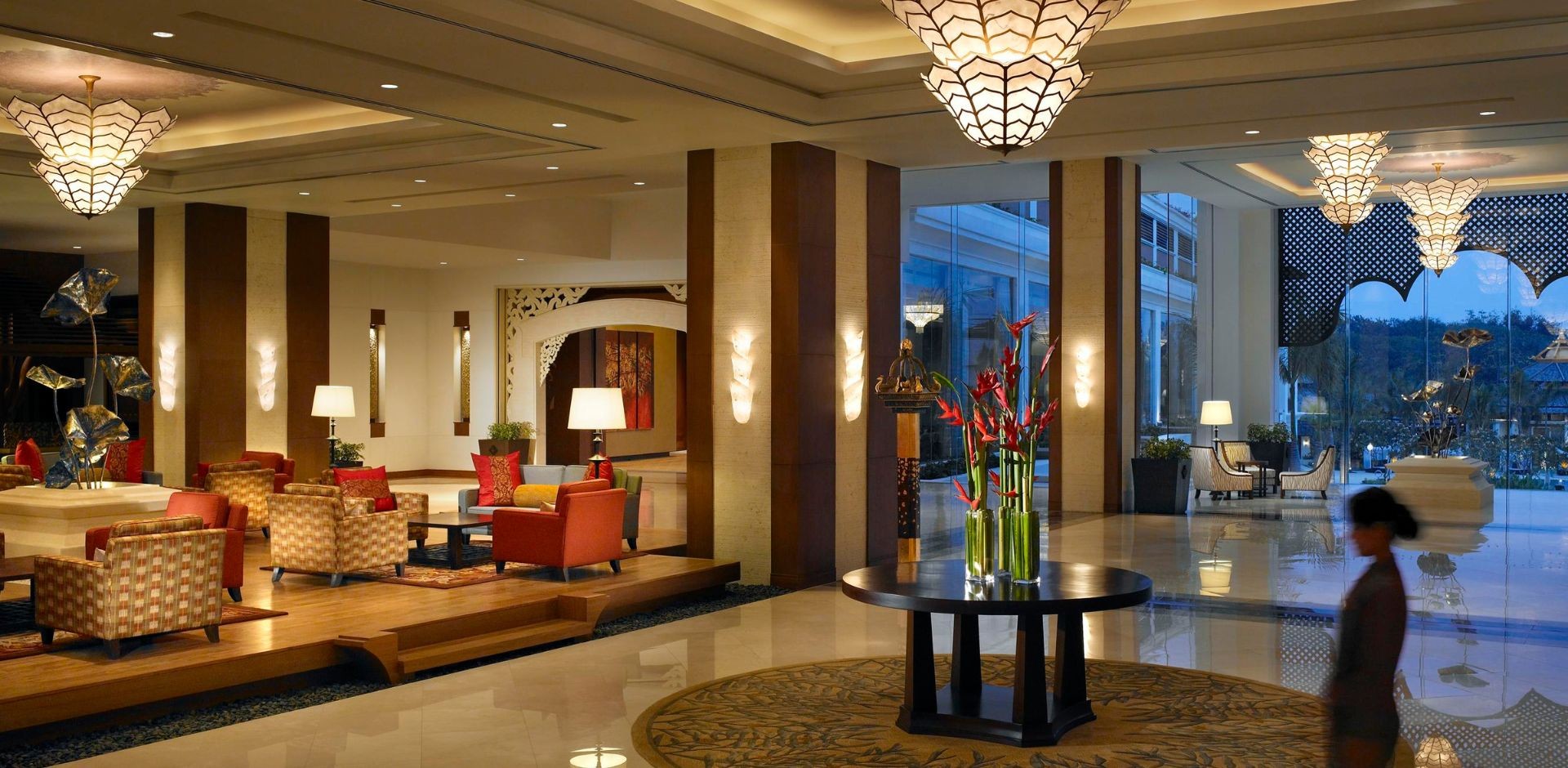 풍부한 직물과 티크 우드의 화려하면서도 미묘한 조화는 호라이즌 클럽 프리미어 룸에 따뜻하고 환영하는 분위기를 주기 위해 전문적으로 제작되었습니다.