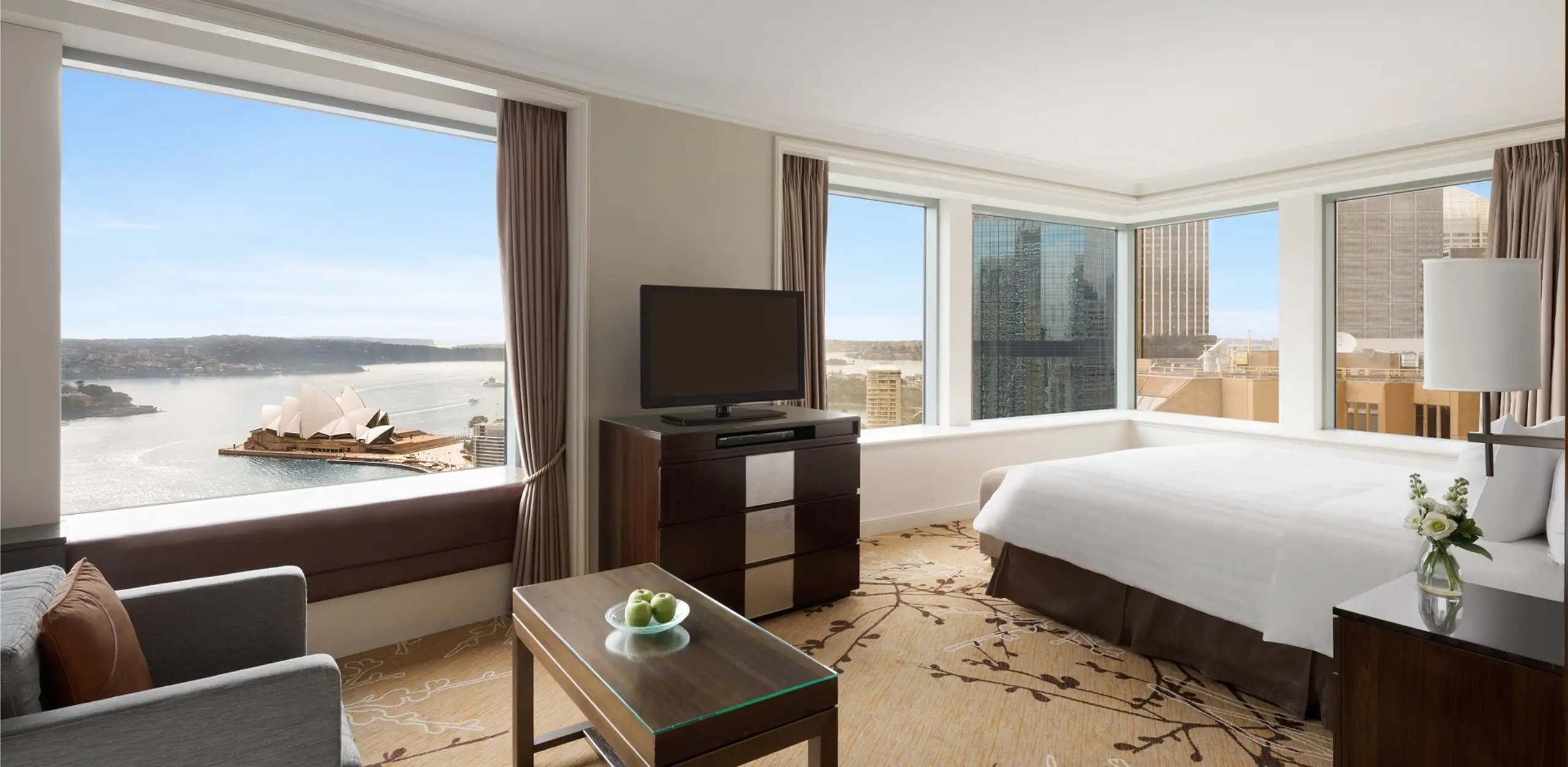 시드니 하버, 시드니 하버 브리지, 시드니 오페라 하우스의 환상적인 전망을 자랑하는 그랜드 프리미어 시드니 하버 룸은 높은 곳에서 항구의 색감을 담은 현대적인 디자인으로 꾸며져 있습니다.