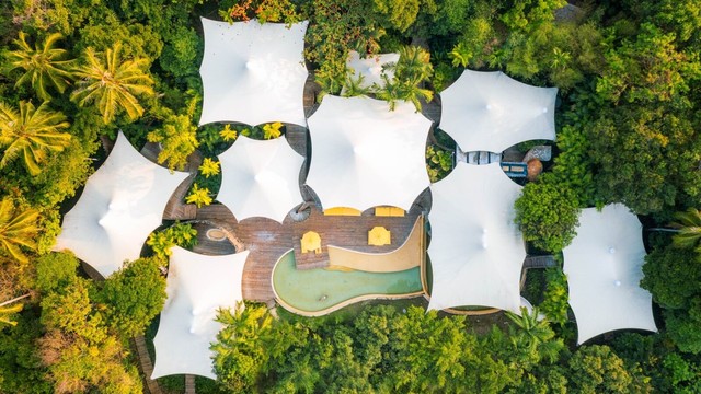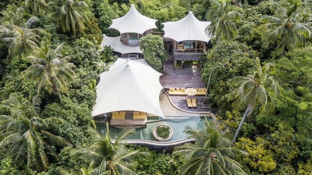 (1개 유닛) 총면적 1,845m² (실내면적 1,637m² 및 수영장 208m²) 별도의 마스터 침실, 드레스룸, 야외 세면대가 있는 욕실, 블리츠 샤워, 스팀룸, 욕조 실내 및 야외 샤워, 욕조, 개별 데크 공간을 갖춘 3개의 추가 침실 (모두 실내 욕실 포함) 선베드가 있는 다양한 넓은 테라스 공간 반달 모양의 인피니티 풀 모든 편의 시설과 수납공간을 갖춘 실용적인 주방 국제 직통 전화, 에스프레소 머신, 차/커피 메이커 Wi-Fi 및 LAN 연결, DVD 플레이어, 개인 iPod용 도킹 스테이션이 있는 Bose Hi-Fi 시스템 개인용 전기 버기 넓은 식탁이 있는 오픈 플랜 거실 공간을 갖춘 데크, 추가 휴식 공간이 있는 아래층 수영장 옆 공간으로 연결
