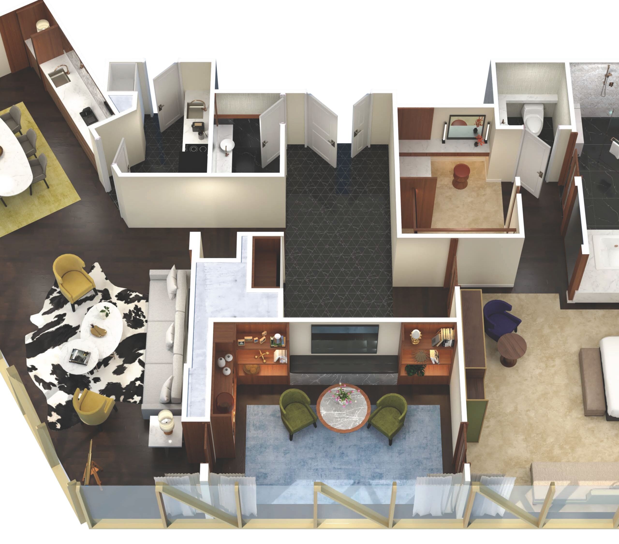 야라 스위트, 킹베드 1개, 욕실 1.5개, 미니 냉장고, 140㎡, 거실/휴식 공간, 식사 공간, 별도의 식당, 별도의 거실, 무선 인터넷 무료 제공, 유선 인터넷 무료 제공