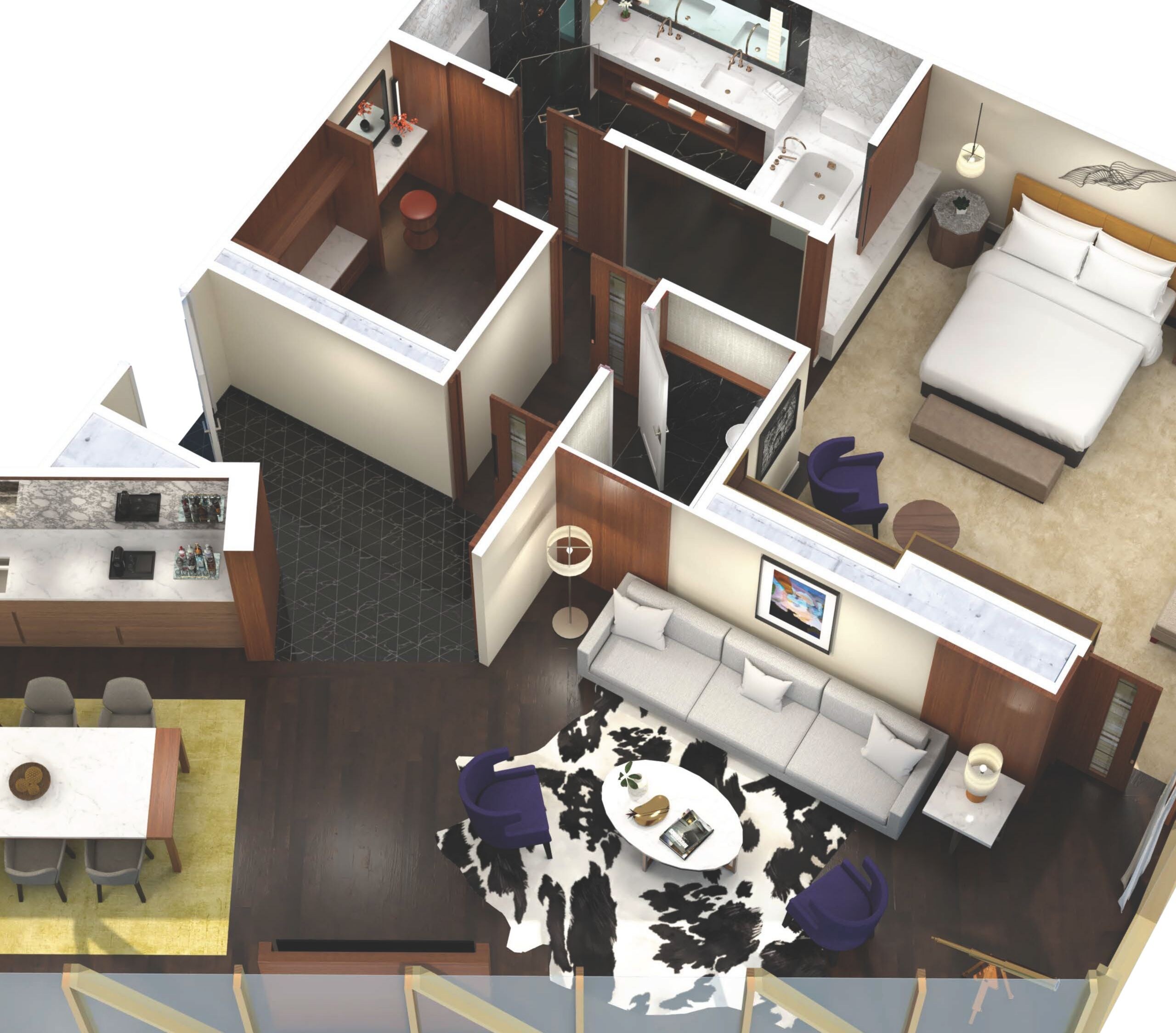 이그제큐티브 스위트, 킹베드 1개, 미니 냉장고, 96㎡, 거실/휴식 공간, 식사 공간, 별도의 식당, 별도의 거실, 무선 인터넷 무료 제공, 유선 인터넷 무료 제공