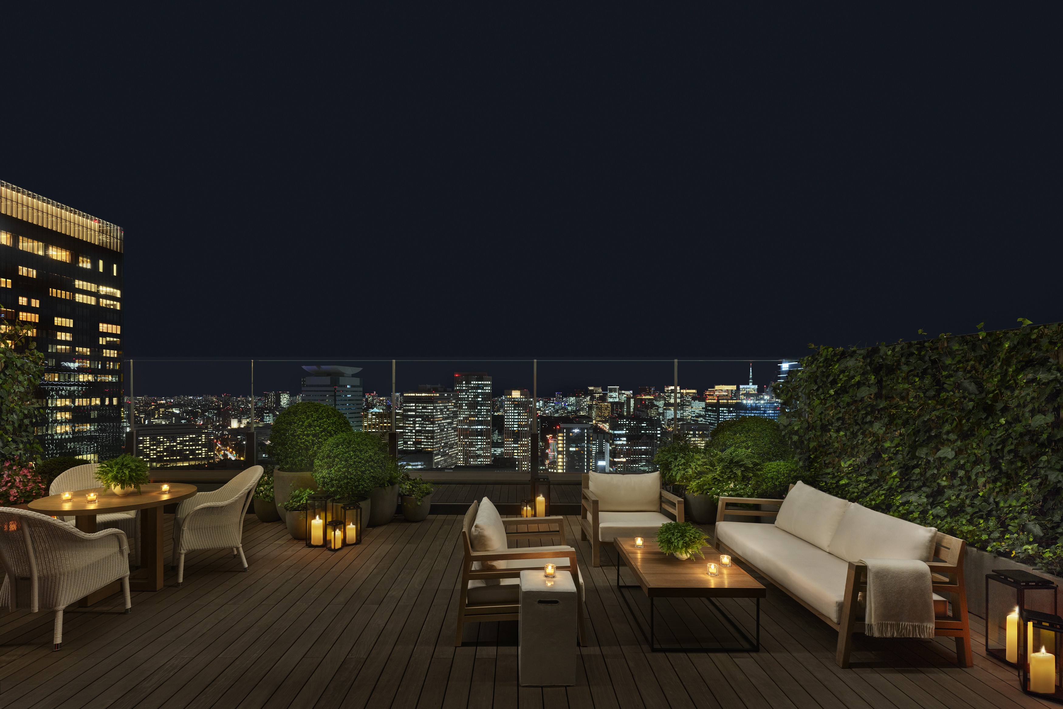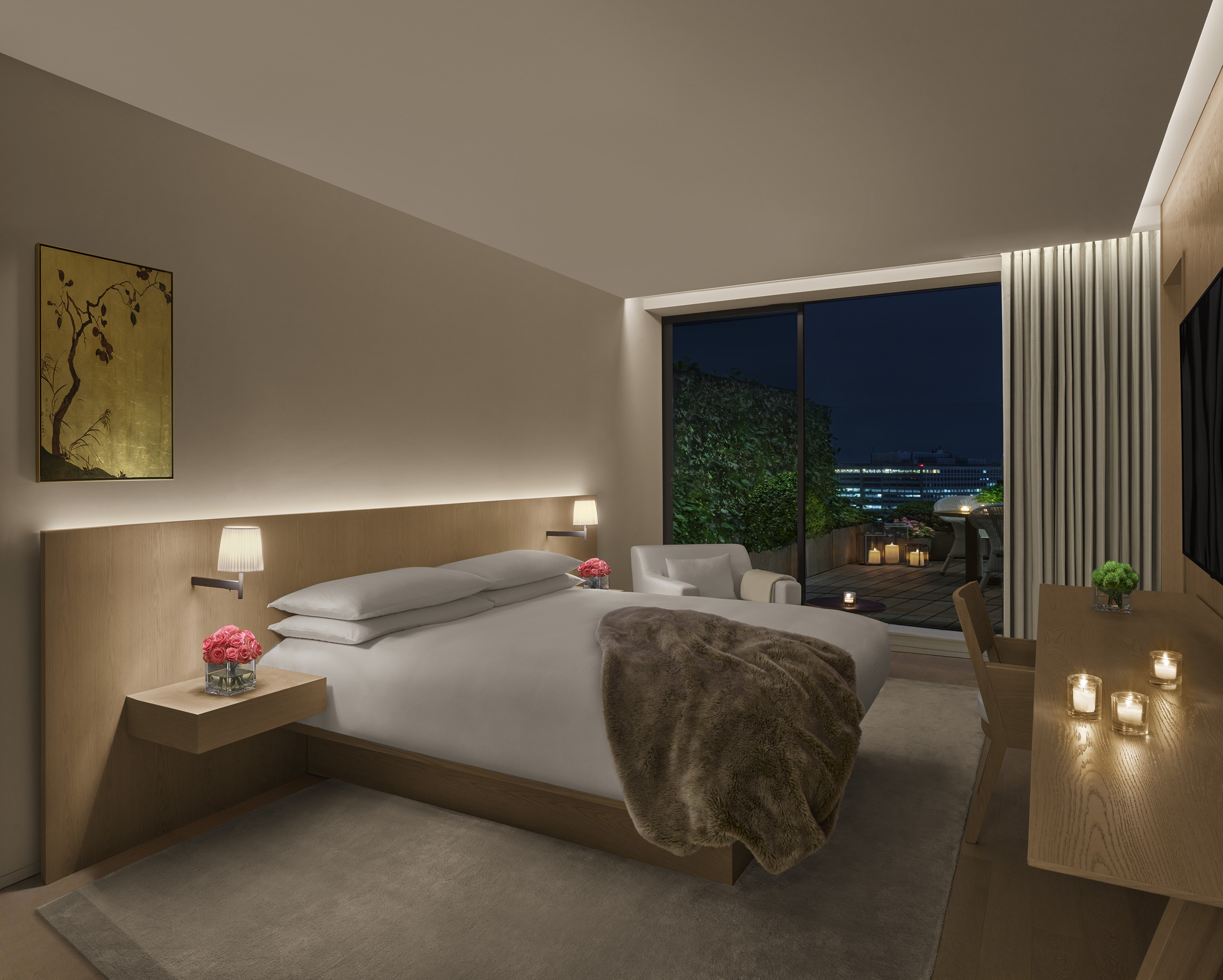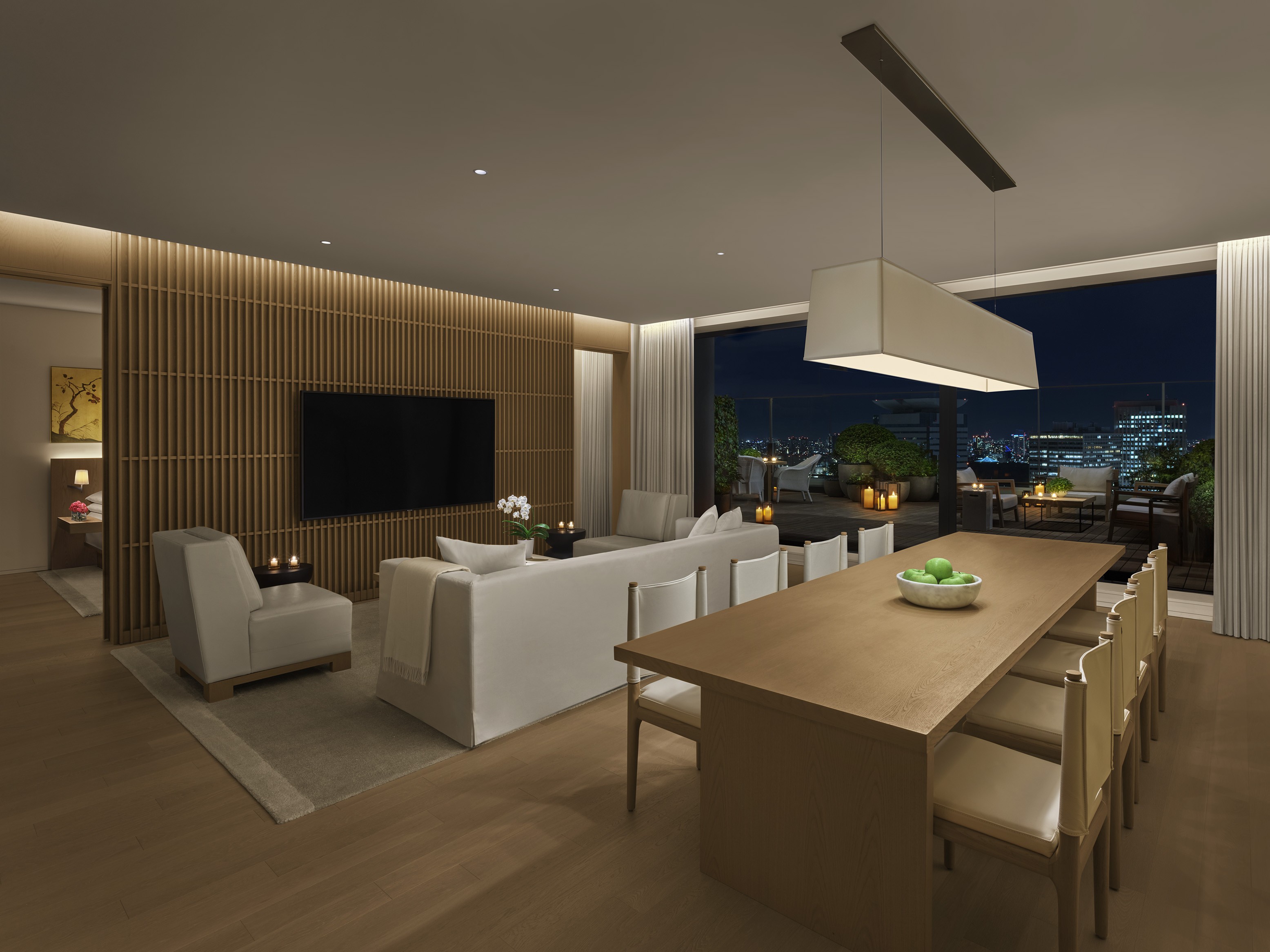 객실 타입: 킹 베드 | 특징: 가구와 푸른 식물이 완비된 넓은 야외 테라스, 넓게 분리된 거실 및 다이닝 공간, 속커튼 및 암막 커튼, 네스프레소 머신, 워크스테이션, 밝은 원목 가구, 풀 사이즈 소파, 미니바, 객실 내 금고, 간이 주방 | 침구: 거위털 이불과 베개, 맞춤 수입 리넨 | 욕실: 레인폴 샤워기가 설치된 자연석 욕실, 1.5개의 욕실, 더블 세면대, 욕조, 르 라보(Le Labo) 맞춤 어메니티, 고성능 헤어드라이어, 고급 목욕 가운 및 슬리퍼 | 기술: 무료 고속 와이파이, 스트리밍 기능이 있는 거실의 75인치 및 침실의 65인치 평면 스마트 HDTV, 음악 스트리밍을 위한 블루투스 오디오 | 서비스: 매일 2회 하우스키핑 서비스, 모든 품목이 완비된 미니바, 요청 시 원하는 신문을 객실로 배달