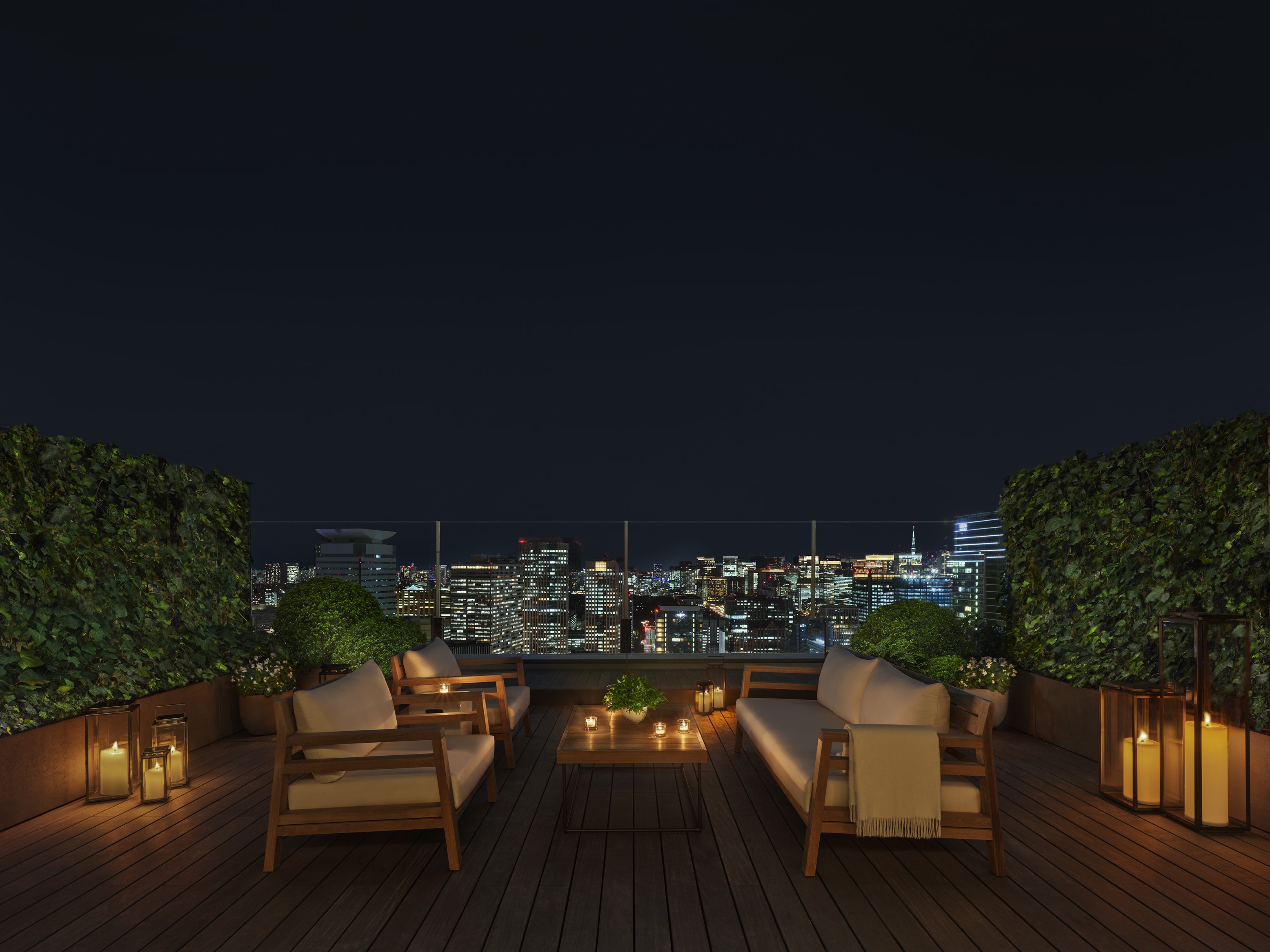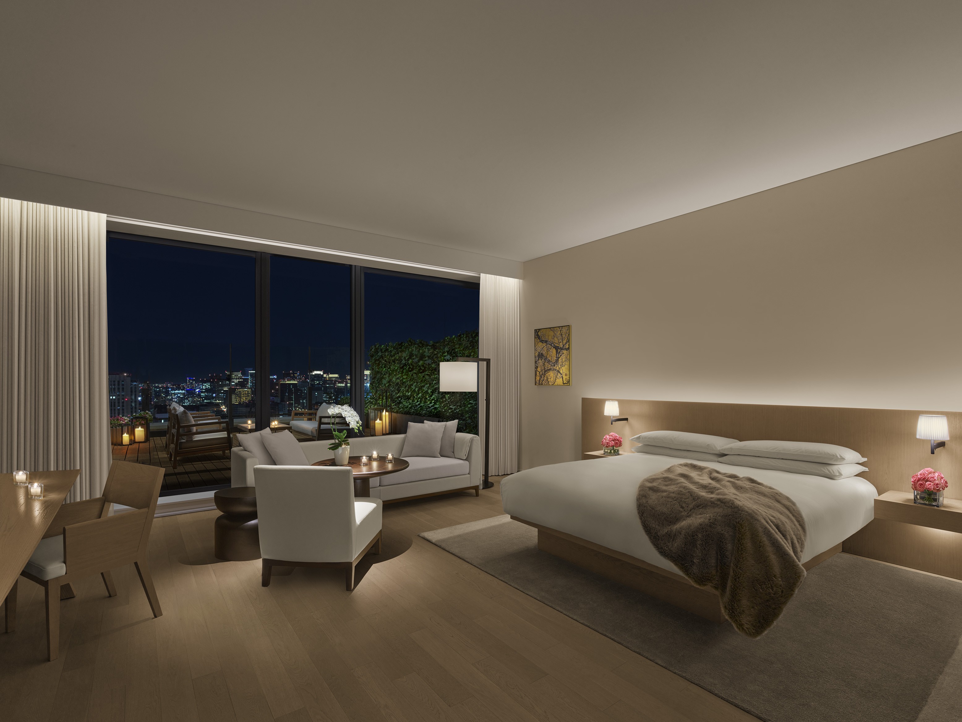 객실 타입: 킹베드 1개 또는 퀸베드 2개 | 특징: 31층 및 33층에 위치한 좌석이 있는 야외 테라스, 시어 및 암막 커튼, 네스프레소 머신, 워크스테이션, 밝은 원목 가구, 풀 사이즈 소파, 미니바, 객실 내 금고 | 침구: 다운 이불 및 베개, 맞춤 수입 리넨 | 욕실: 레인폴 샤워기가 설치된 자연석 욕실, 싱글 세면대, 일본식 욕조, 맞춤 제작 르 라보(Le Labo) 어메니티, 고성능 헤어드라이어, 고급 목욕 가운 및 슬리퍼 | 기술: 무료 고속 와이파이, 스트리밍 기능이 있는 65인치 평면 스마트 HDTV, 음악 스트리밍용 블루투스 오디오 | 서비스: 매일 2회 하우스키핑 서비스, 완비된 미니바, 요청 시 원하는 신문 객실 배달