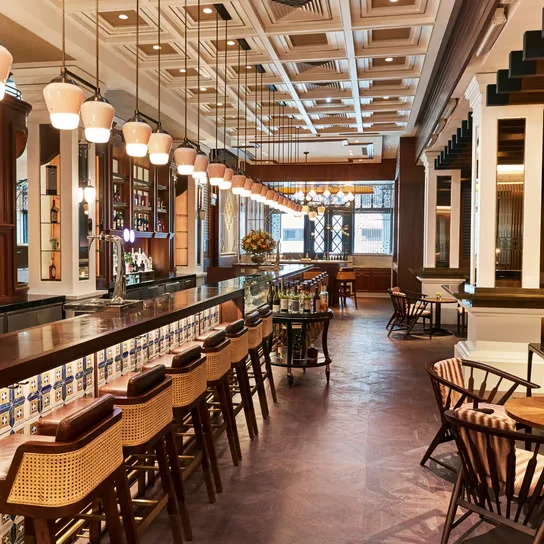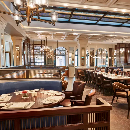 저층 아케이드에 자리한 레스토랑과 바는 과거 이 블록을 채우던 사교계의 공기를 가장 짙게 느낄 수 있는 곳입니다. 아시아 전역의 다채로운 향신료를 활용한 그릴 요리를 선보이는 '15 스탬포드(15 Stamford)'는 숯불 향이 은은하게 배어있는 뛰어난 미식 경험을 제공합니다.