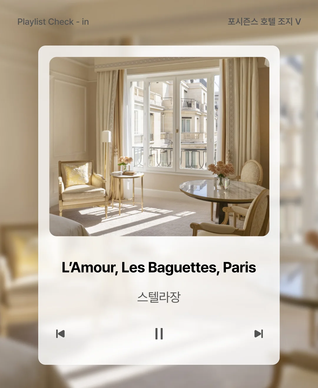 파리의 가장 우아한 순간을 담은 호텔의 무드 속에서, 마치 영화의 주인공이 된 듯한 로맨틱한 사운드트랙을 감상해 보세요.
