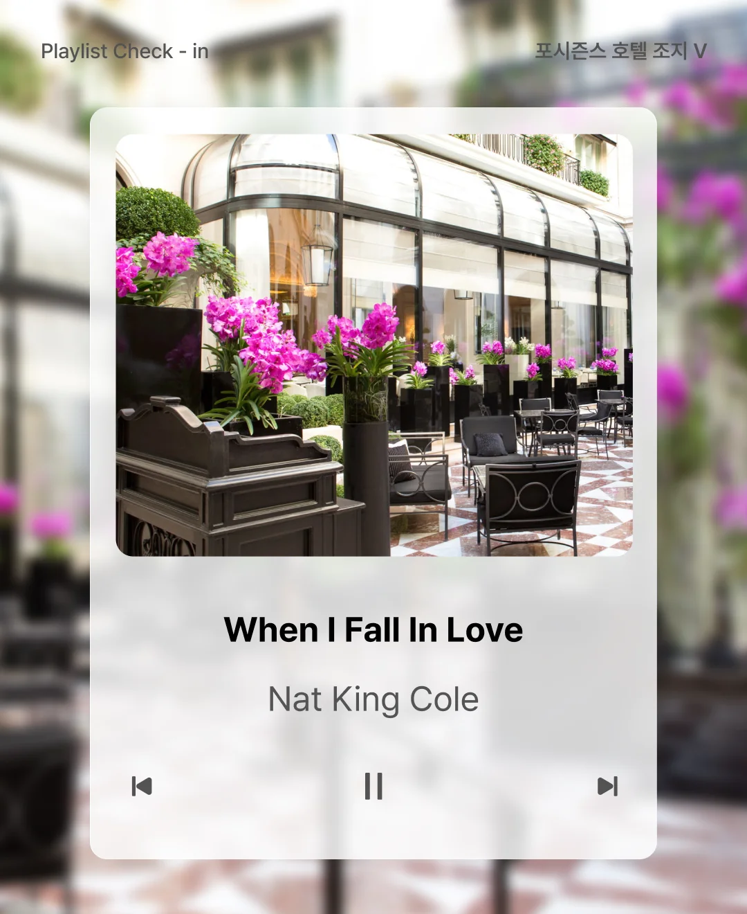 클래식한 재즈 명곡으로, Nat King Cole의 부드러운 목소리와 오케스트라의 조화가 인상적입니다. 사랑의 감정을 진지하게 표현한 이 곡은, 꽃이 가득한 포시즌스 호텔 조지 V의 로맨틱한 저녁과 어울립니다.