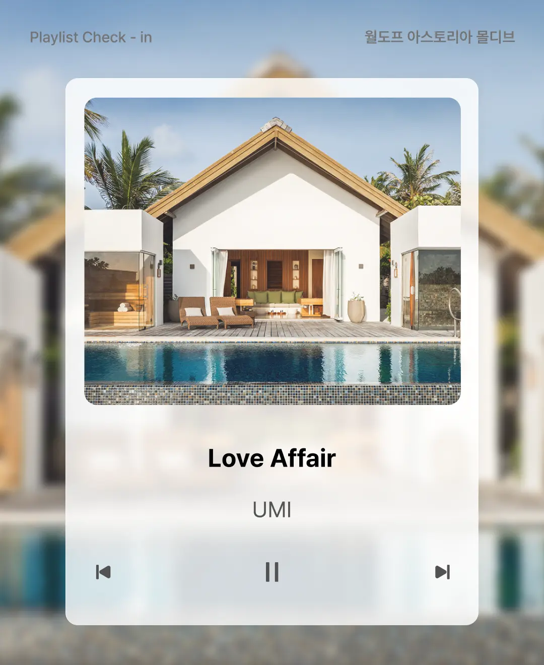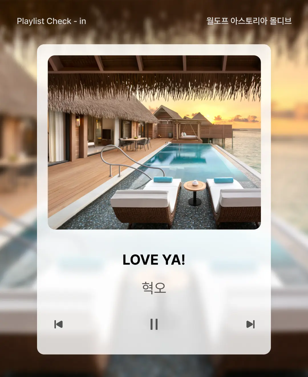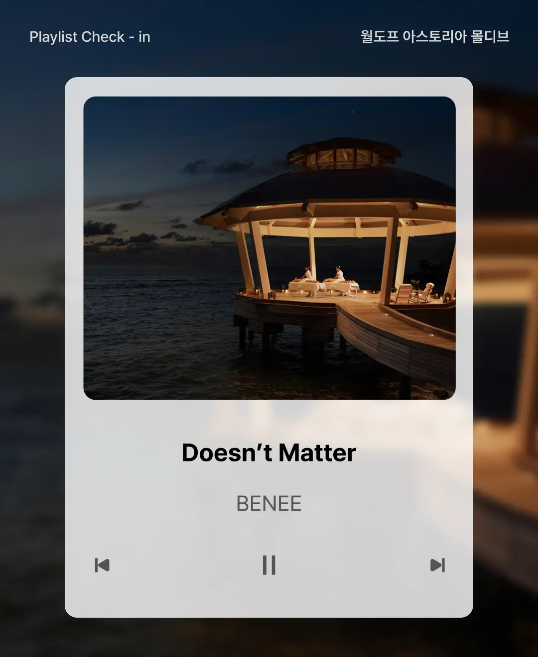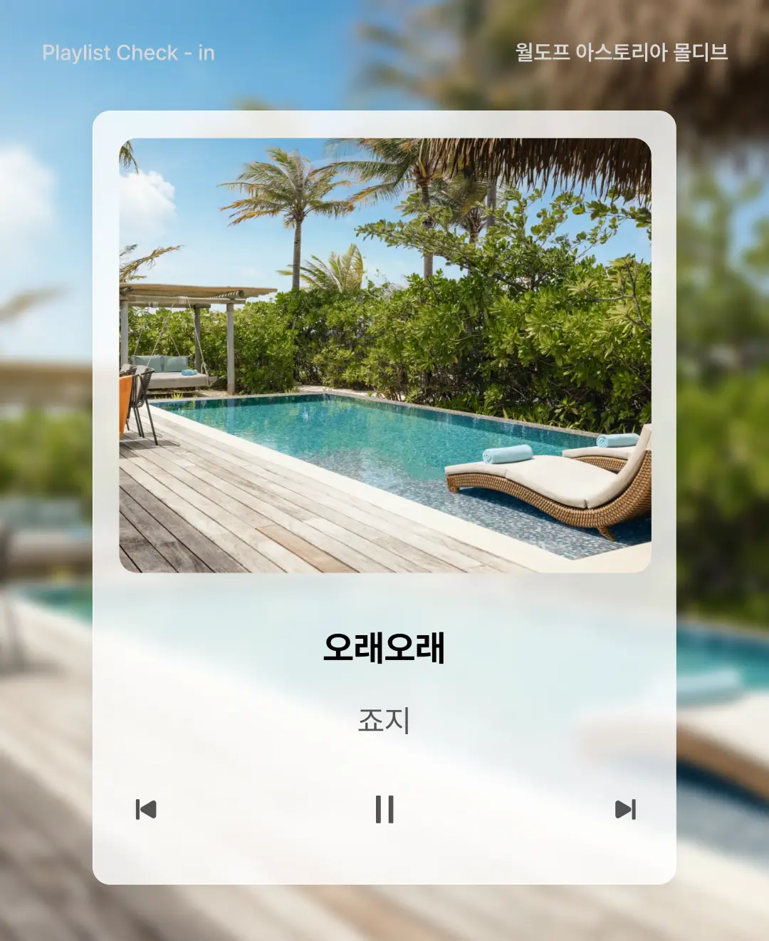 이 곡은 몰디브에서의 하루를 차분히 마무리하는 순간과 잘 어울립니다.